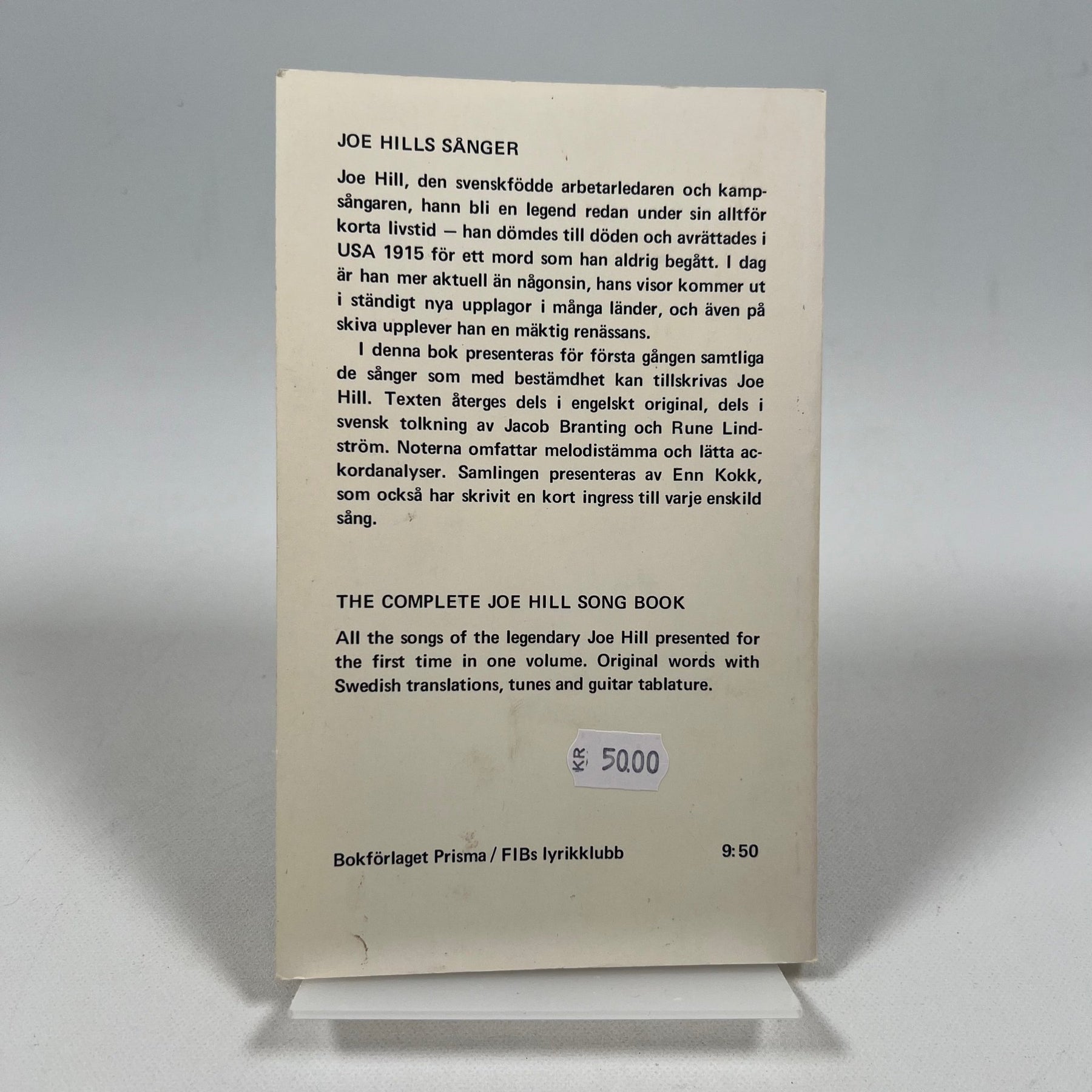 Boken "Joe Hills sånger" samlar sånger och berättelser av den legendariska arbetarledaren och sångaren Joe Hill. Detta är en samlingsvolym som innehåller både originaltexter på engelska och svenska översättningar, samt noter för gitarr.