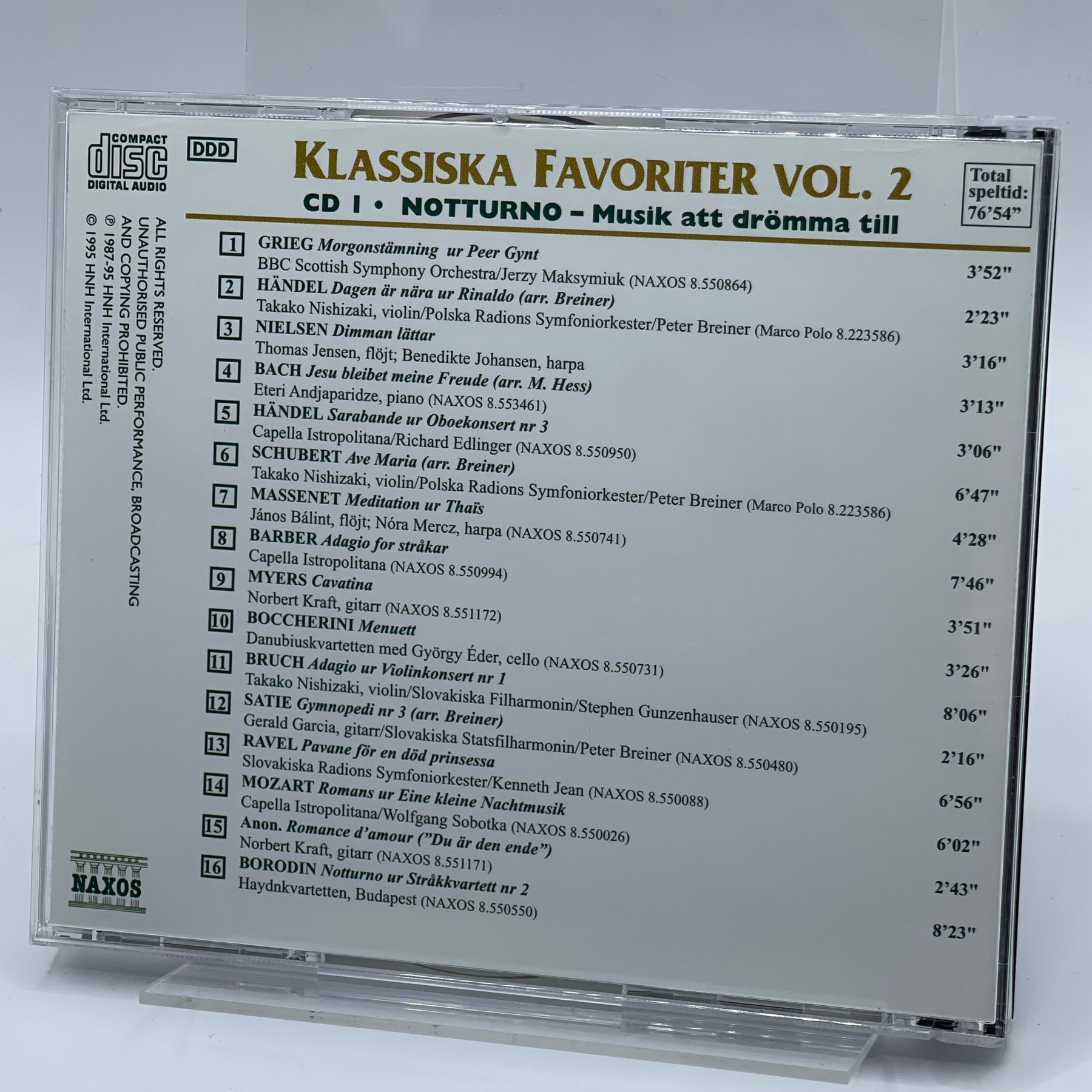 Denna CD innehåller en noggrannt utvald samling klassiska verk som är perfekta för avslappning och eftertanke. Musikalbumet 'Klassiska Favoriter Volym 2 - Notturno' presenterar verk av kända kompositörer såsom Grieg och Bach, och utförs av prestigefyllda orkestrar och solister. Den här samlingen fungerar utmärkt som en musikalisk följeslagare under lugna kvällar eller som en stämningshöjare i ditt hem. Skivan är begagnad men i mycket gott skick.