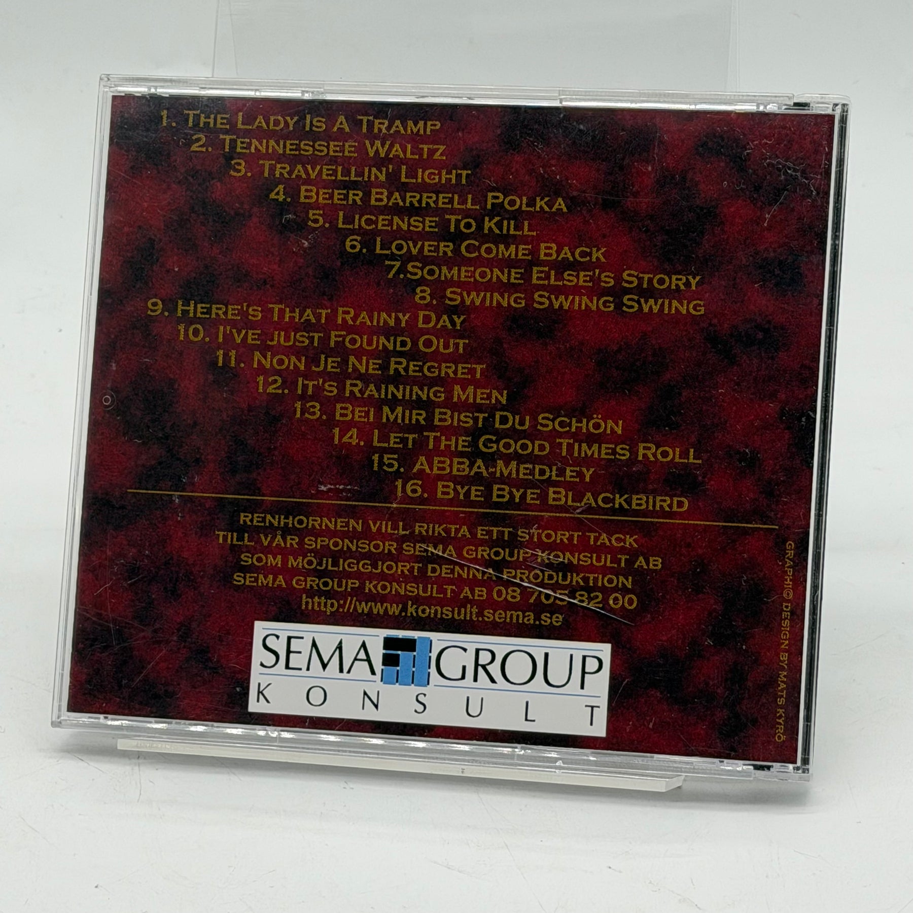 Denna särskilda CD-skiva bär på en samling av klassiska och populära låtar framförda av bandet Renhornen. Med en spännande blandning av låtar som "The Lady is a Tramp" och "It's Raining Men" till ett ABBA-medley är denna skiva ett måste för samlare eller musikentusiaster som uppskattar variation. Skivan är begagnad men välbevarad, vilket gör den perfekt för både användning och som samlarobjekt.Produktspecifikationer
