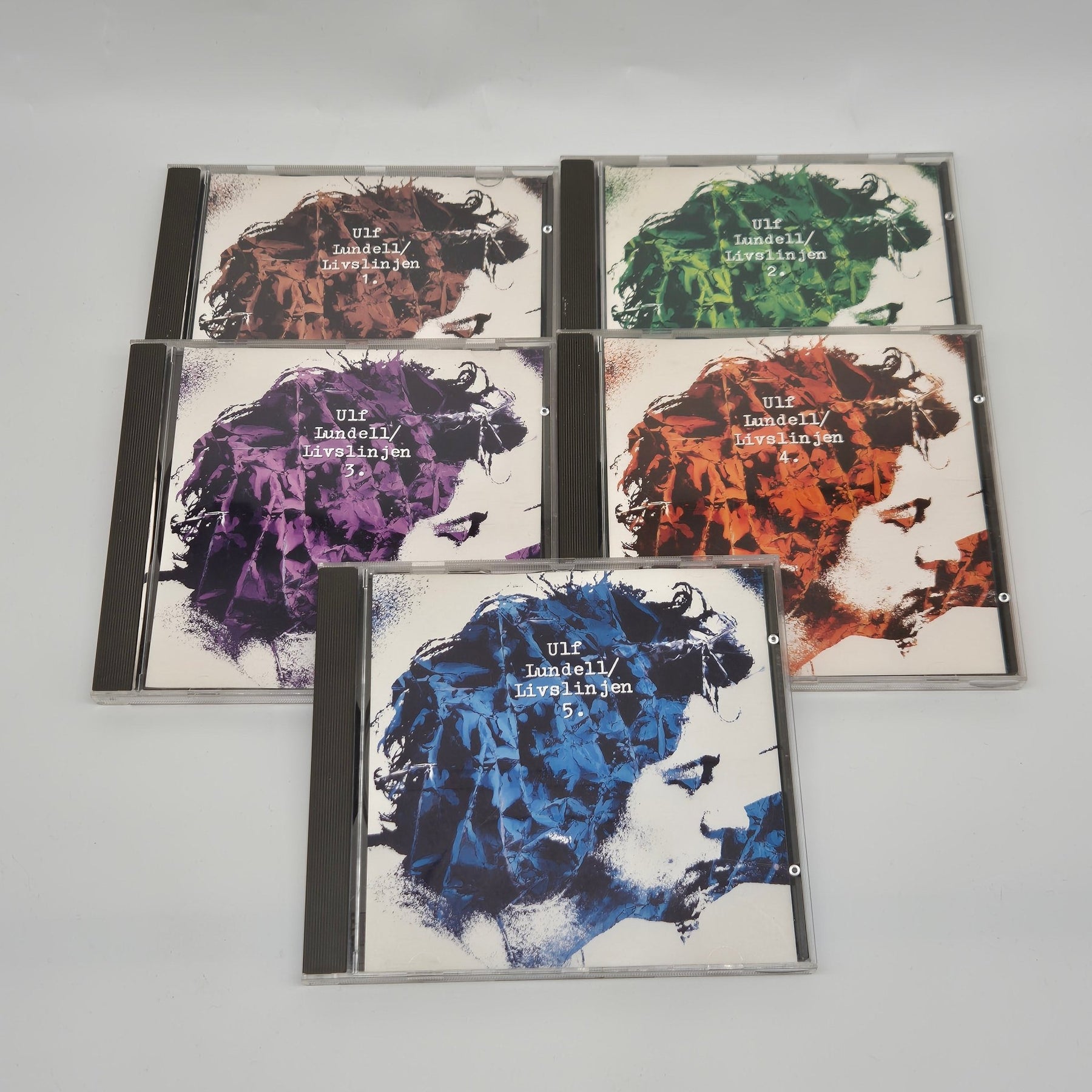 Samling av musik-CD-skivor från den kända artisten Ulf Lundell. Varje exemplar innehåller ett album titulerat "Livslinjen". Perfekt för samlare eller fans av svensk rockmusik. Skivorna och fodralen är använda men i gott skick.
