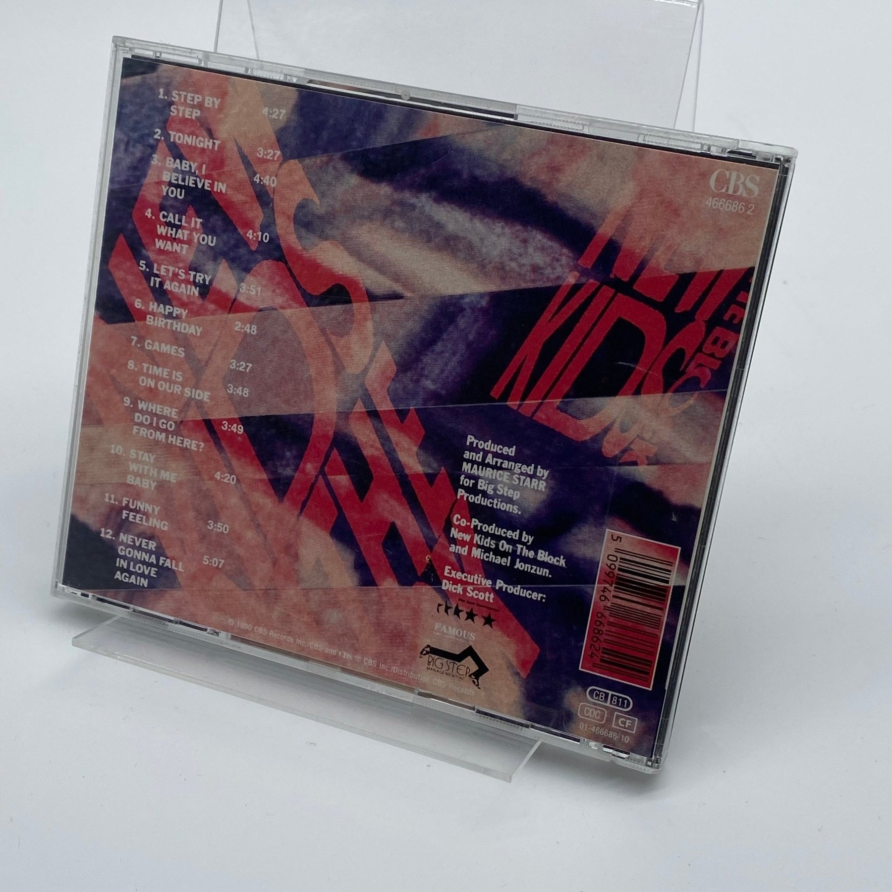Musikalbum på CD med titeln "Step by Step" av popgruppen New Kids on the Block. Skivan innehåller flera hits och är ett insamlingsobjekt för fans. Skicket är begagnat men gott.
