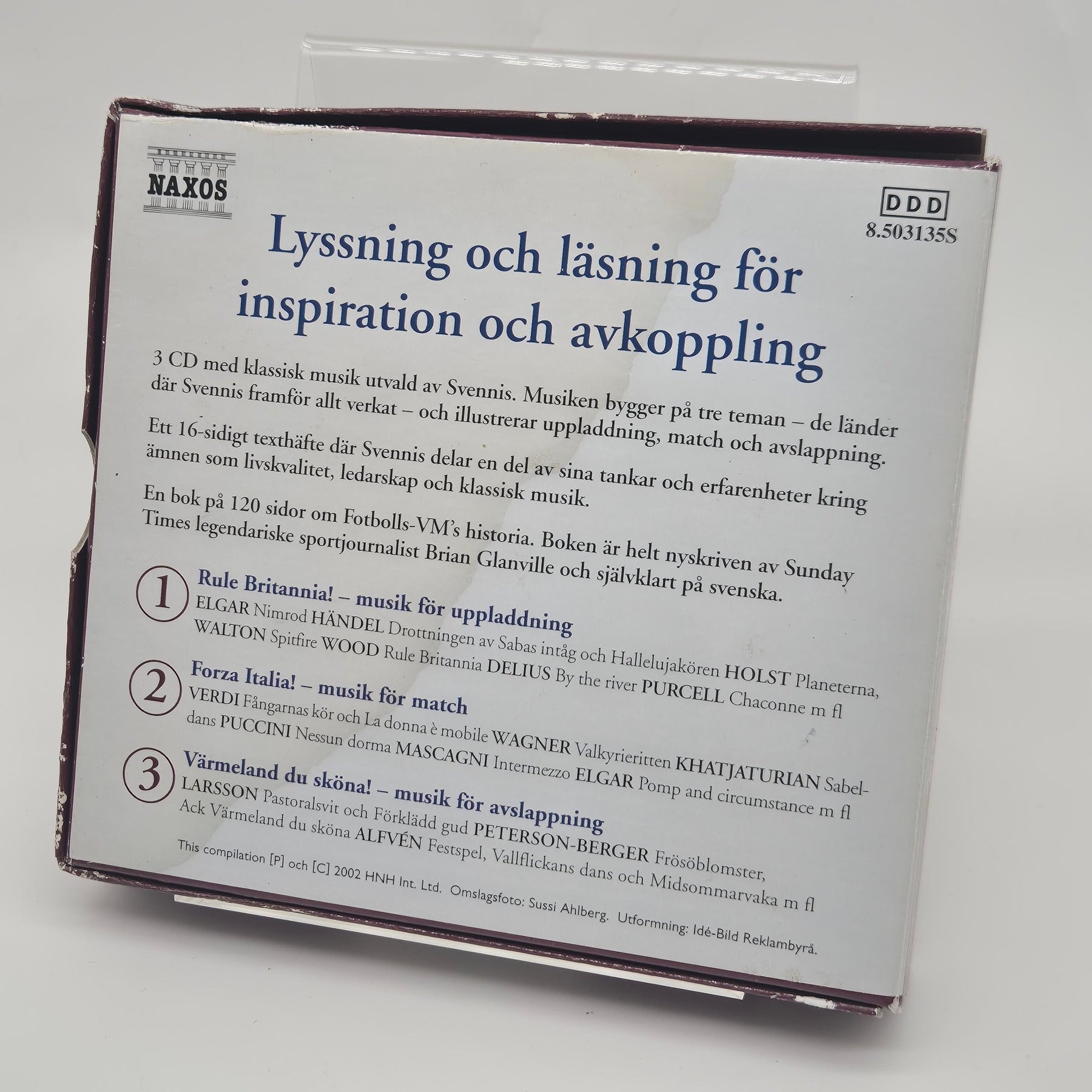 Denna samling består av 3 CD-skivor med klassisk musik sammansatt och inspirerad av Sven-Göran Eriksson. Setet innehåller även en 120-sidig bok om fotbolls-VM:s historia, skriven på svenska. Skivorna är indelade i tre teman: uppladdning, match och avslappning. En intressant kombination av musik och sport som avspeglar Erikssons liv och karriär.