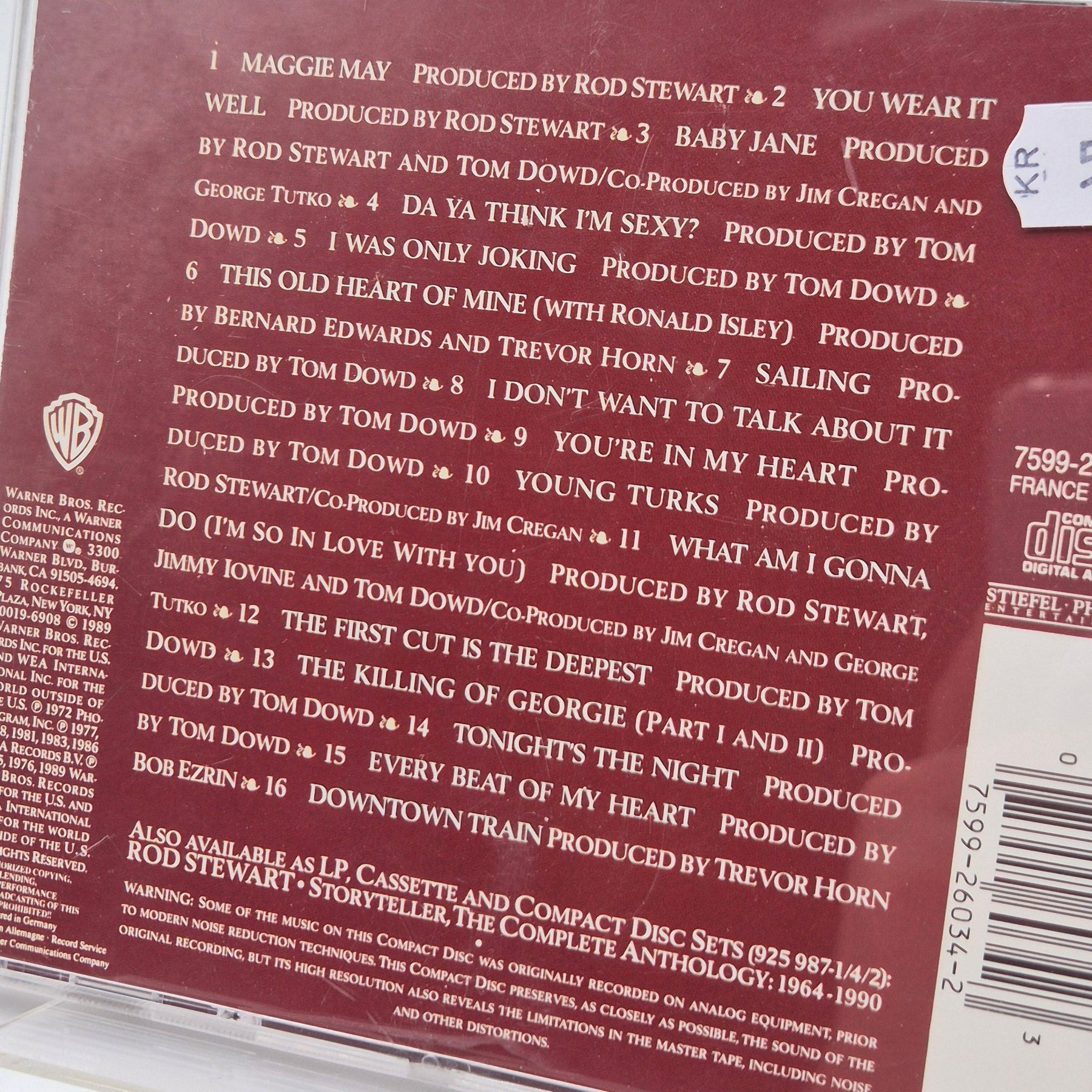 En begagnad CD med titeln "The Best of Rod Stewart". Albumet innehåller 16 av Rod Stewarts största hits, inklusive fyra bonuslåtar. Perfekt för fans av klassisk rock och pop.