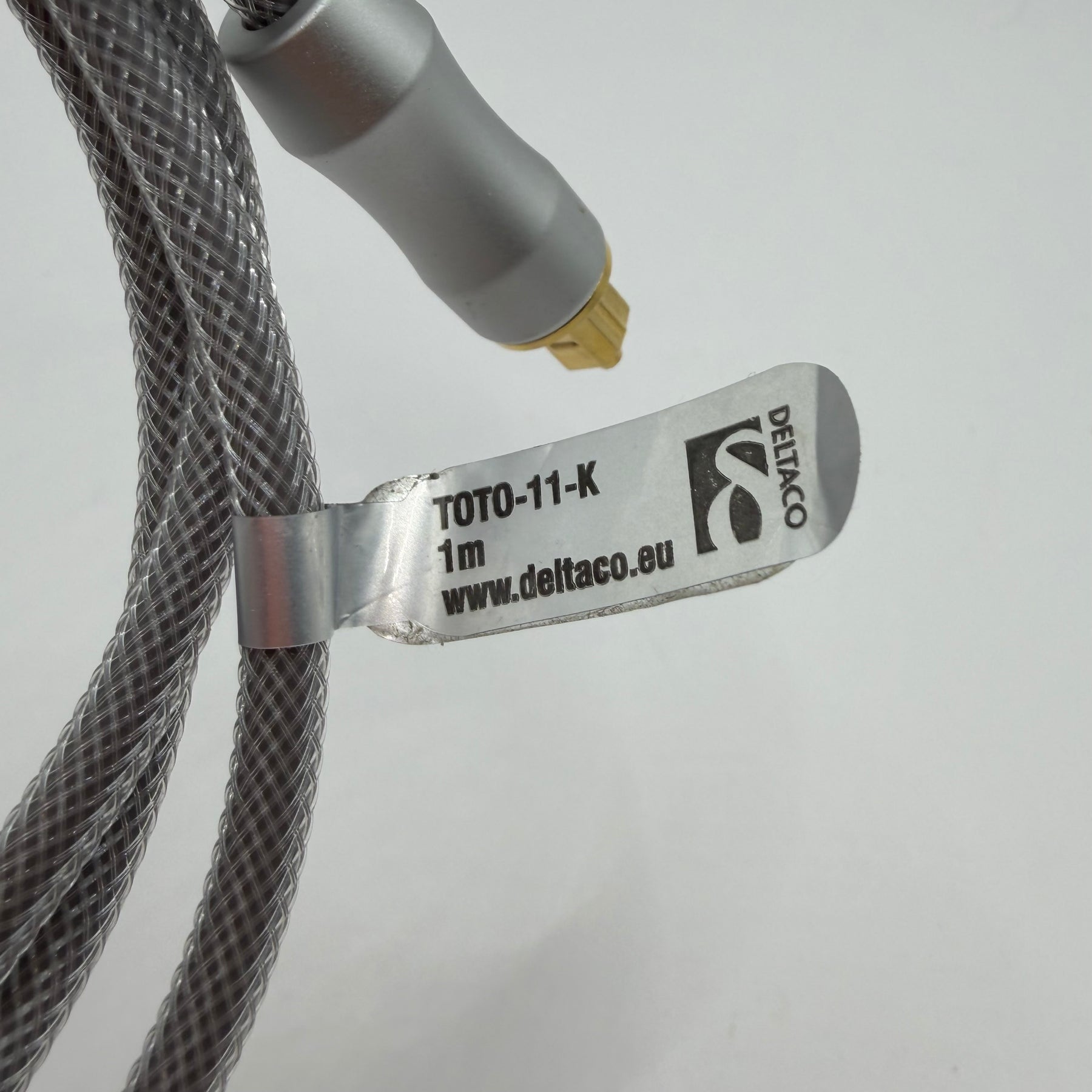Denna 1 meter långa optiska ljudkabel är idealisk för att överföra kristallklart digitalt ljud med minimal förlust. Den är tillverkad av Deltaco och har en robust design med en vävda yttre hölje som inte bara skyddar kabeln men också bidrar till en störningsfri signalöverföring. Passar utmärkt för att ansluta till ditt hemmabiosystem eller din HiFi-anläggning. Kabeln är begagnad men i mycket gott skick, redo att leverera överlägsen ljudkvalitet.Produktspecifikationer