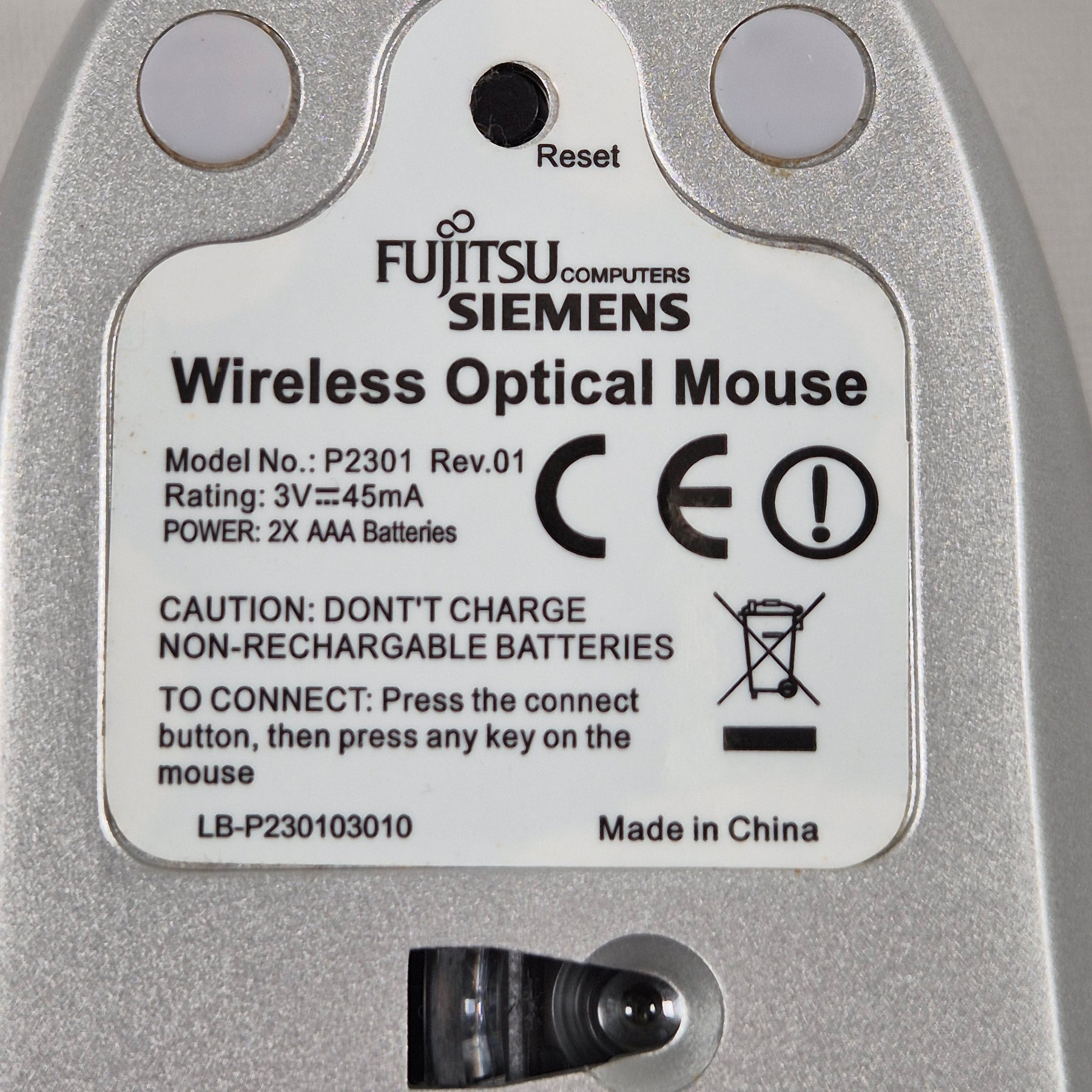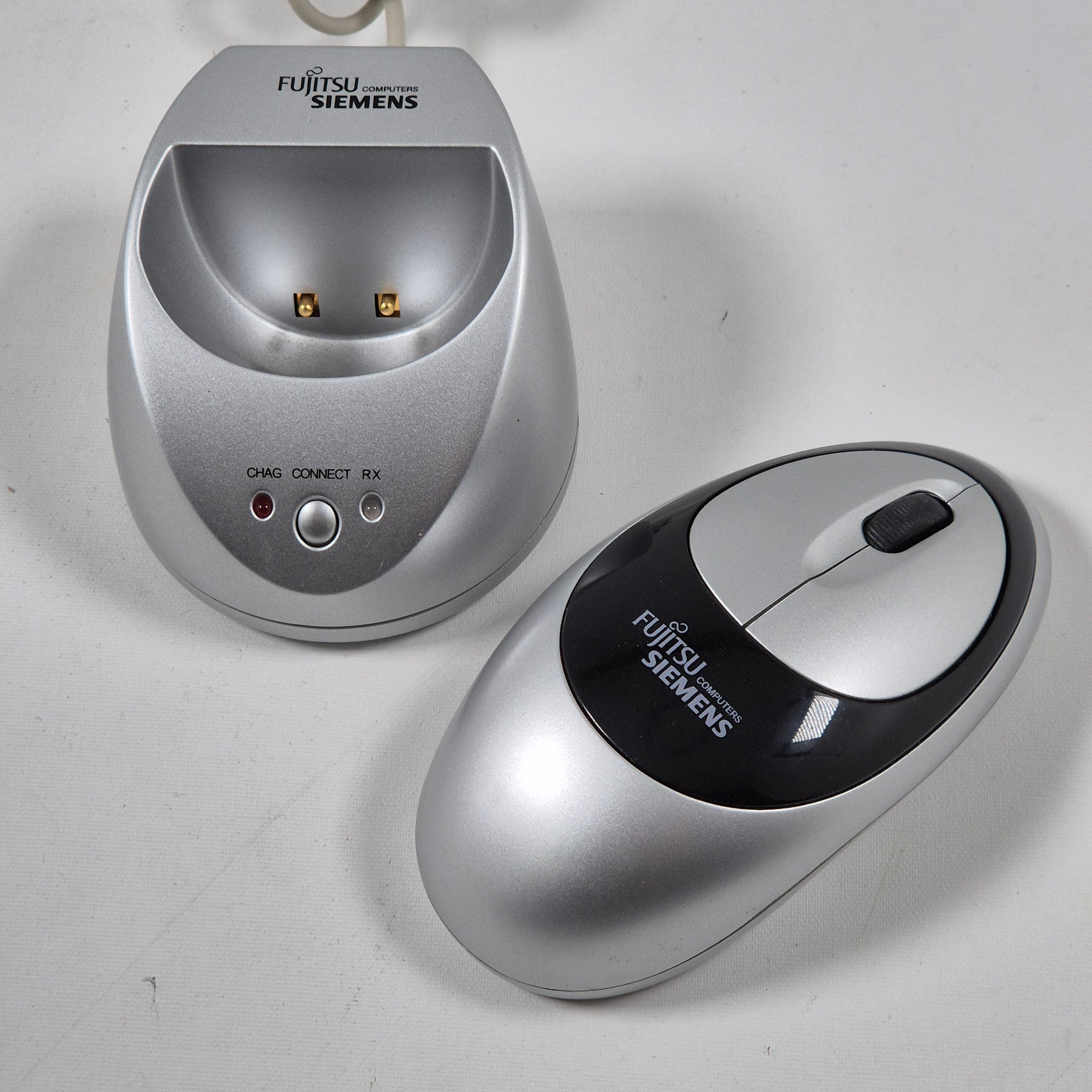 Utforska det digitala med elegans med denna retro Fujitsu Siemens trådlös optisk mus.