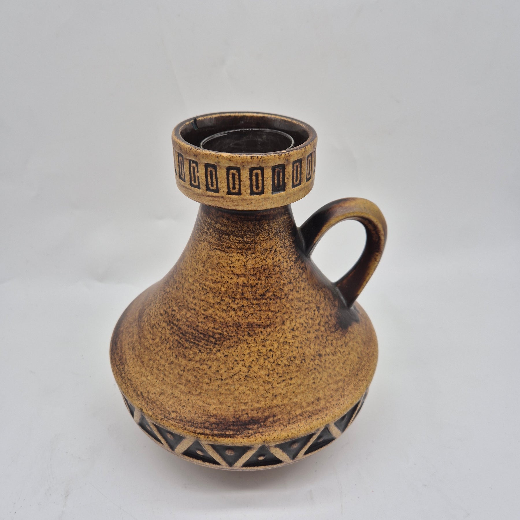 Denna vackra vas är formad i traditionell stil med en rik brun nyans och distinkta mönster som ger en varm karaktär till varje rum. Tillverkad av högkvalitativt keramikmaterial, är den både dekorativ och funktionell. Den kompakta storleken och det tidlösa utseendet gör den till en idealisk prydnad för både moderna och klassiska interiörer. Vasen är begagnad men välbevarad, vilket gör den till ett utmärkt köp för den som söker äkthet och kvalitet.| Kategori | Dekoration |