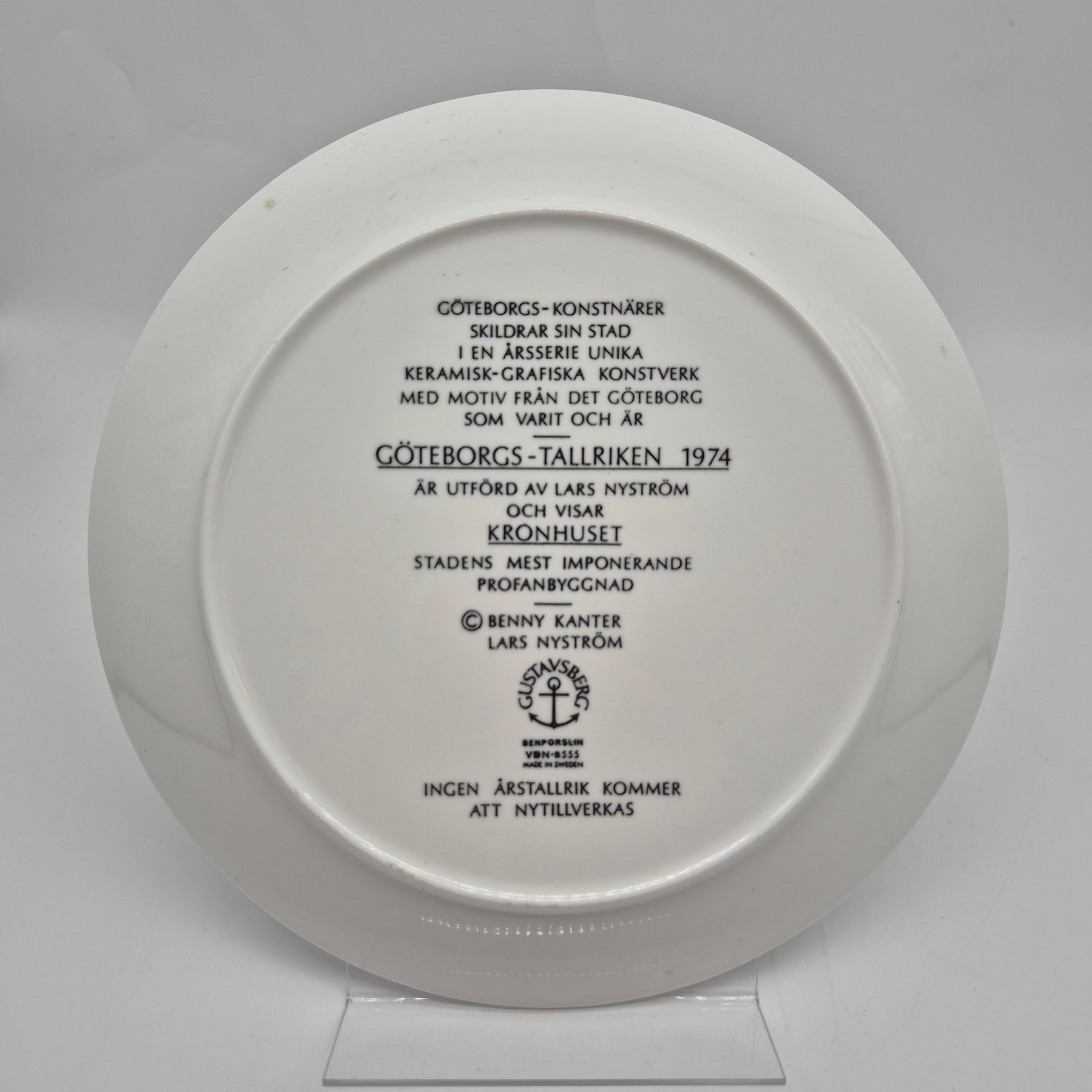 Upptäck en bit av Göteborgs historia med denna dekorativa keramiktallrik från 1974.