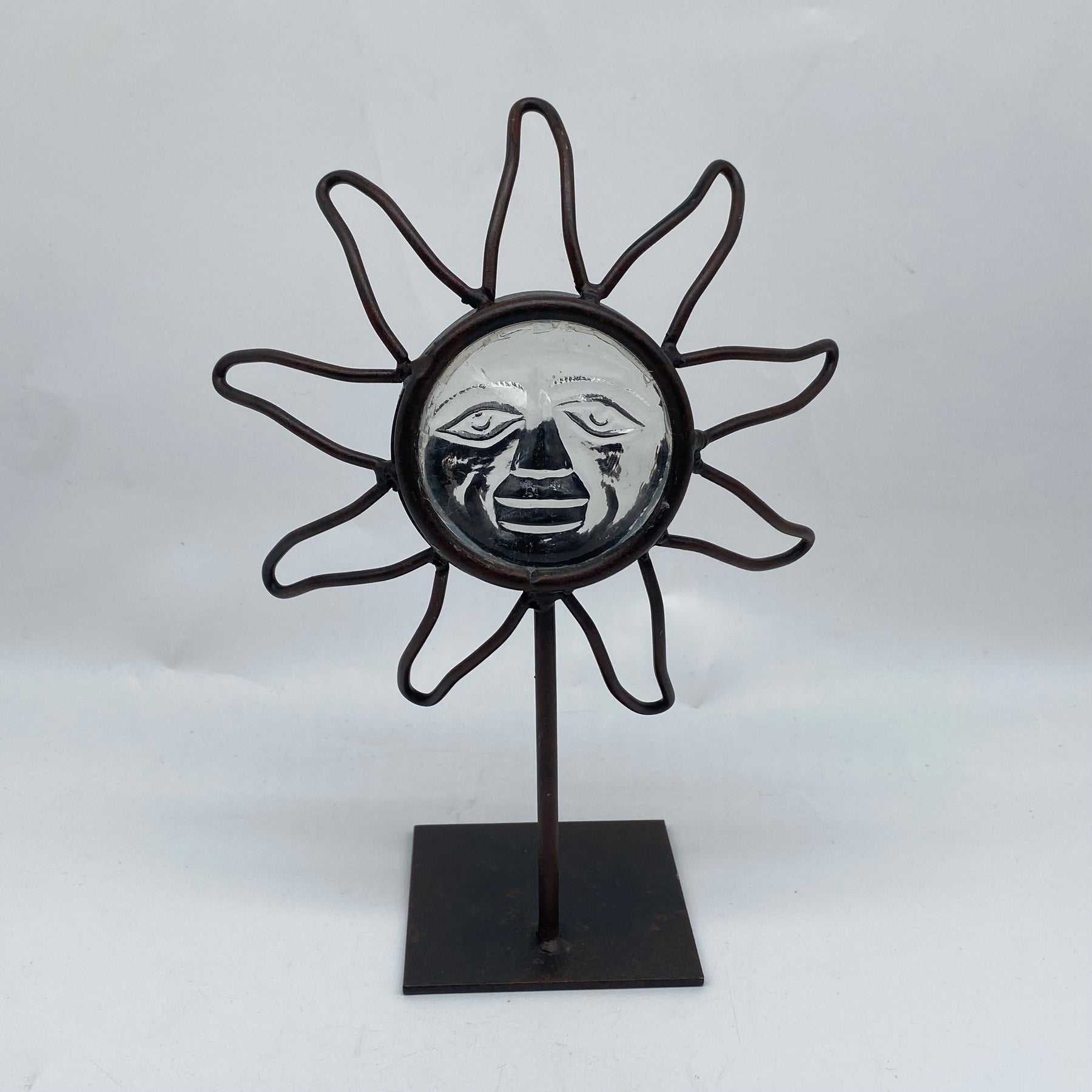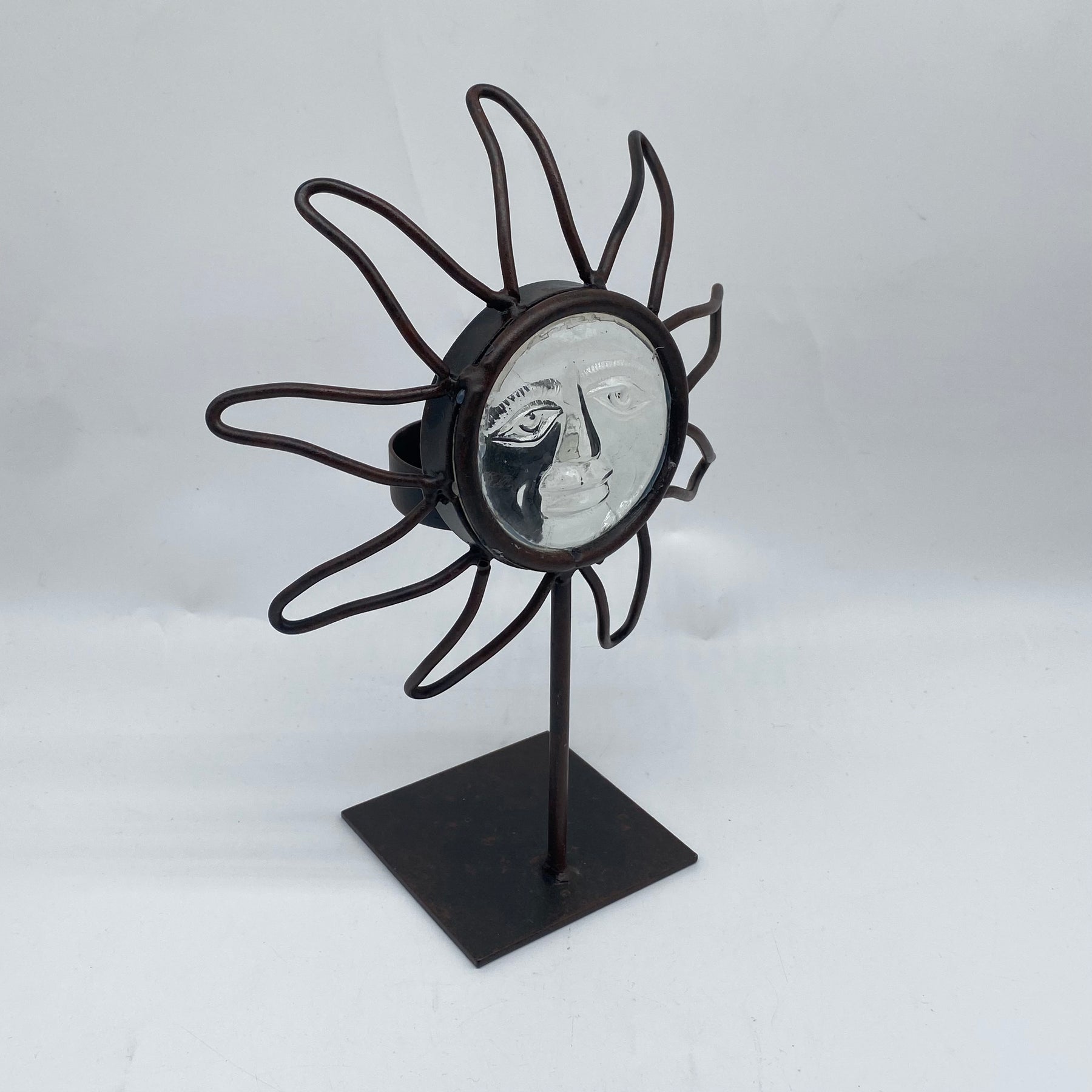 Upptäck denna unika och charmiga dekorativa solskulptur, ett måste för alla som älskar originell och konstnärlig inredning.