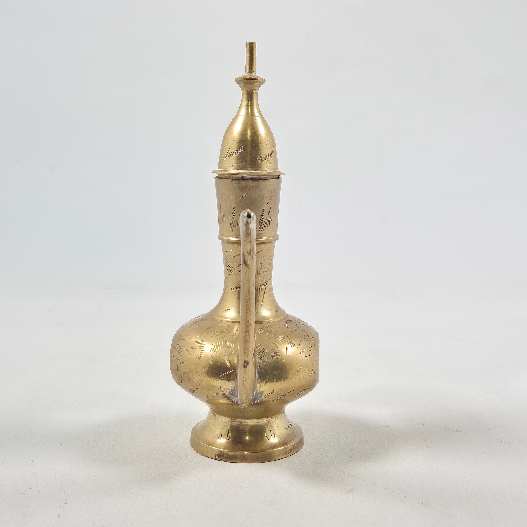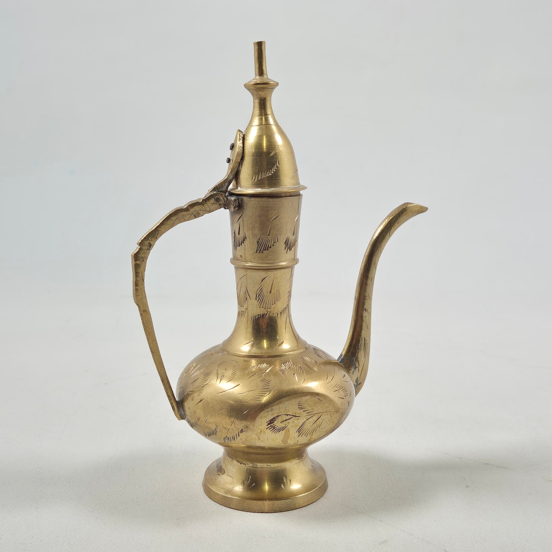 Antik sofistikerad mässingskanna med handgravyr
