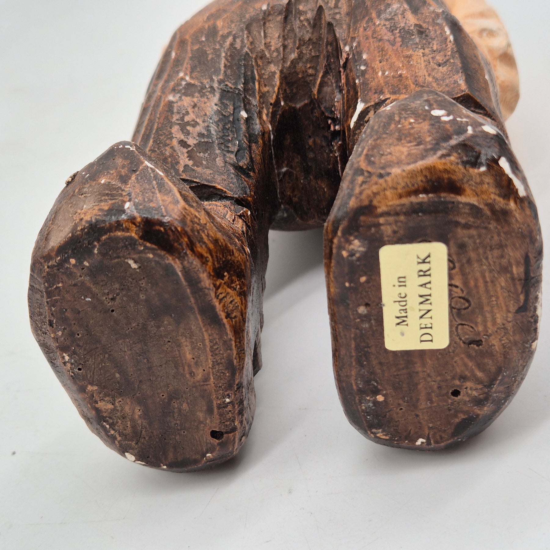Denna handgjorda träfigur föreställande en glad äldre man klädd i klassiska bondkläder är ett verkligt hantverk från Danmark. Figuren är tillverkad med stor detaljrikedom vilket ger en varm och hemtrevlig känsla till ditt hem. Perfekt för dig som uppskattar rustika och unika inredningsdetaljer. Produkten är begagnad men välbevarad, med en viss patina som tillför äkthet och charm.