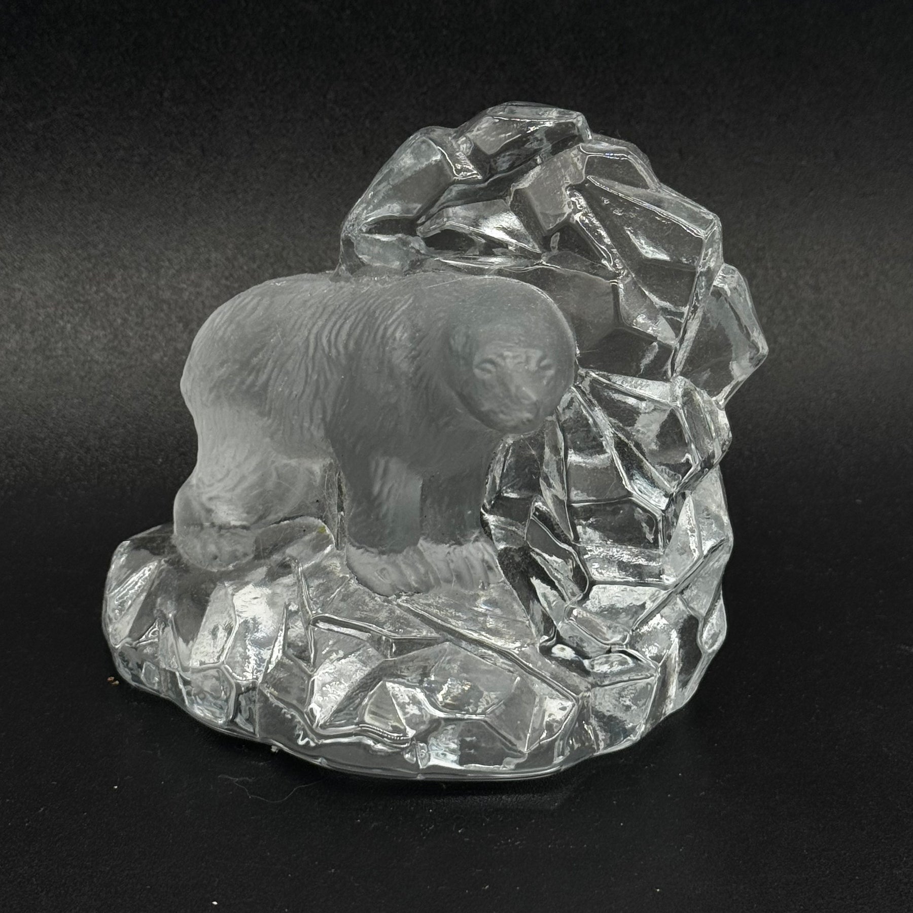 Denna dekorationsfigur föreställer en isbjörn inbäddad i genomskinlig kristall, vilket ger ett intryck av en arktisk scen. Figuren kombinerar både skönhet och en känsla av vild natur, perfekt för den som uppskattar naturinspirerad konst i hemmet. Produkten är begagnad men bibehåller sitt ursprungliga skick med klar och ren finish.