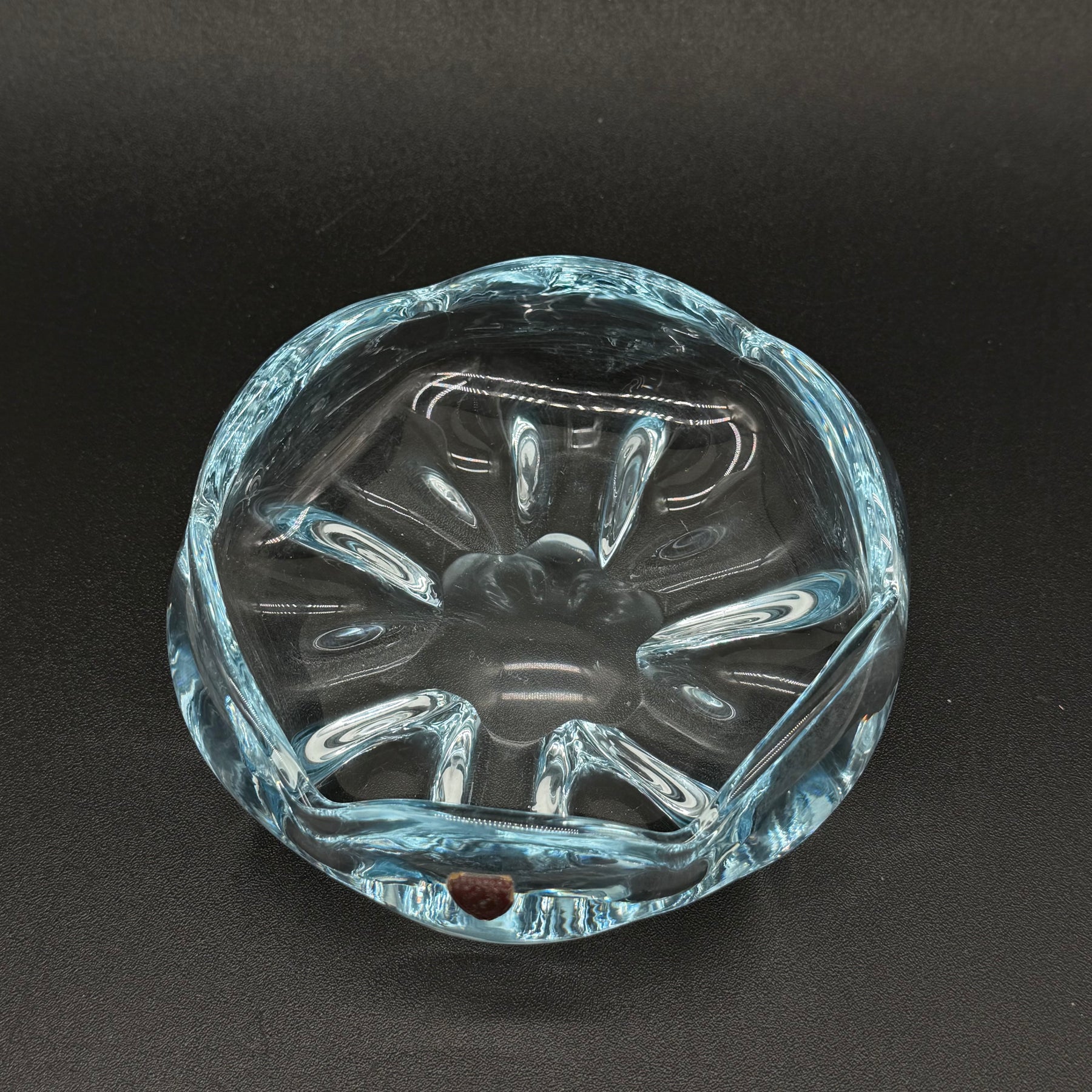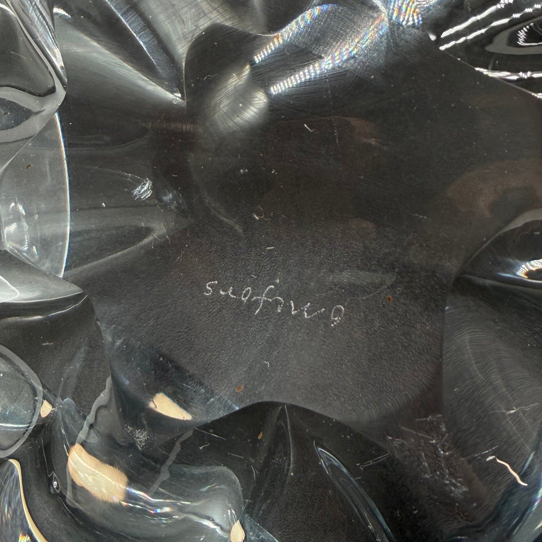 Denna unika vas är noggrant tillverkad av genomskinlig kristall med ett iögonfallande mönster som fångar och reflekterar ljuset vackert. Vasen är designad av Studiofiring, kända för sitt förstklassiga hantverk och innovativa design. Perfekt för dem som uppskattar konsthantverk och vill tillföra en touch av lyx till sitt hem. Begagnad men välbevarad och i mycket gott skick, vilket gör den till ett praktfullt och hållbart val.