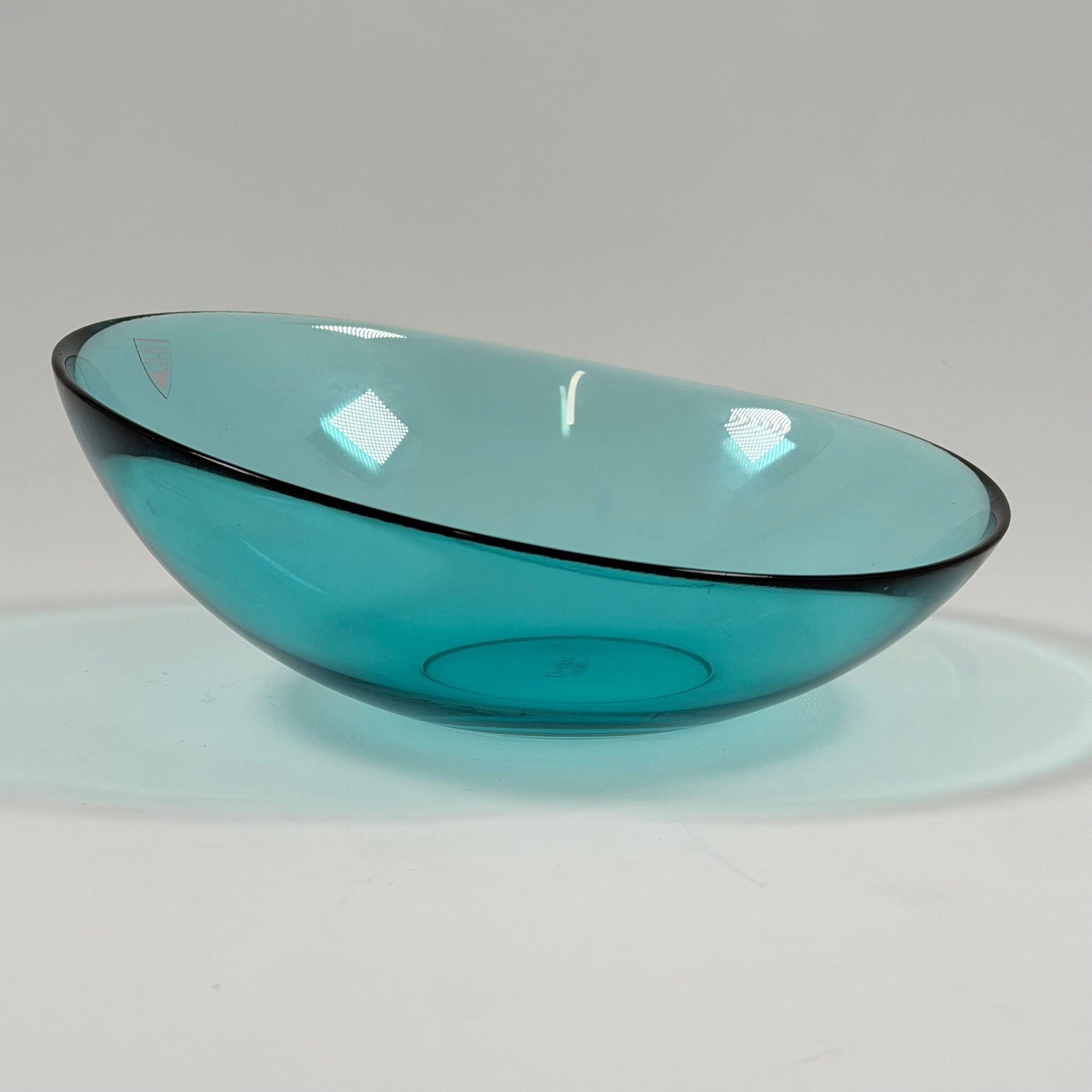 Denna eleganta skål från det välrenommerade märket Orrefors kombinerar klassisk formgivning med funktion. Skålens turkosfärgade glas ger en exklusiv känsla och gör den till en dekorativ detalj i inredningen. Kan användas både som prydnad och för servering, vilket gör den perfekt för alla typer av tillställningar. Skålen är begagnad men bibehåller ett utmärkt skick med minimala bruksspår.