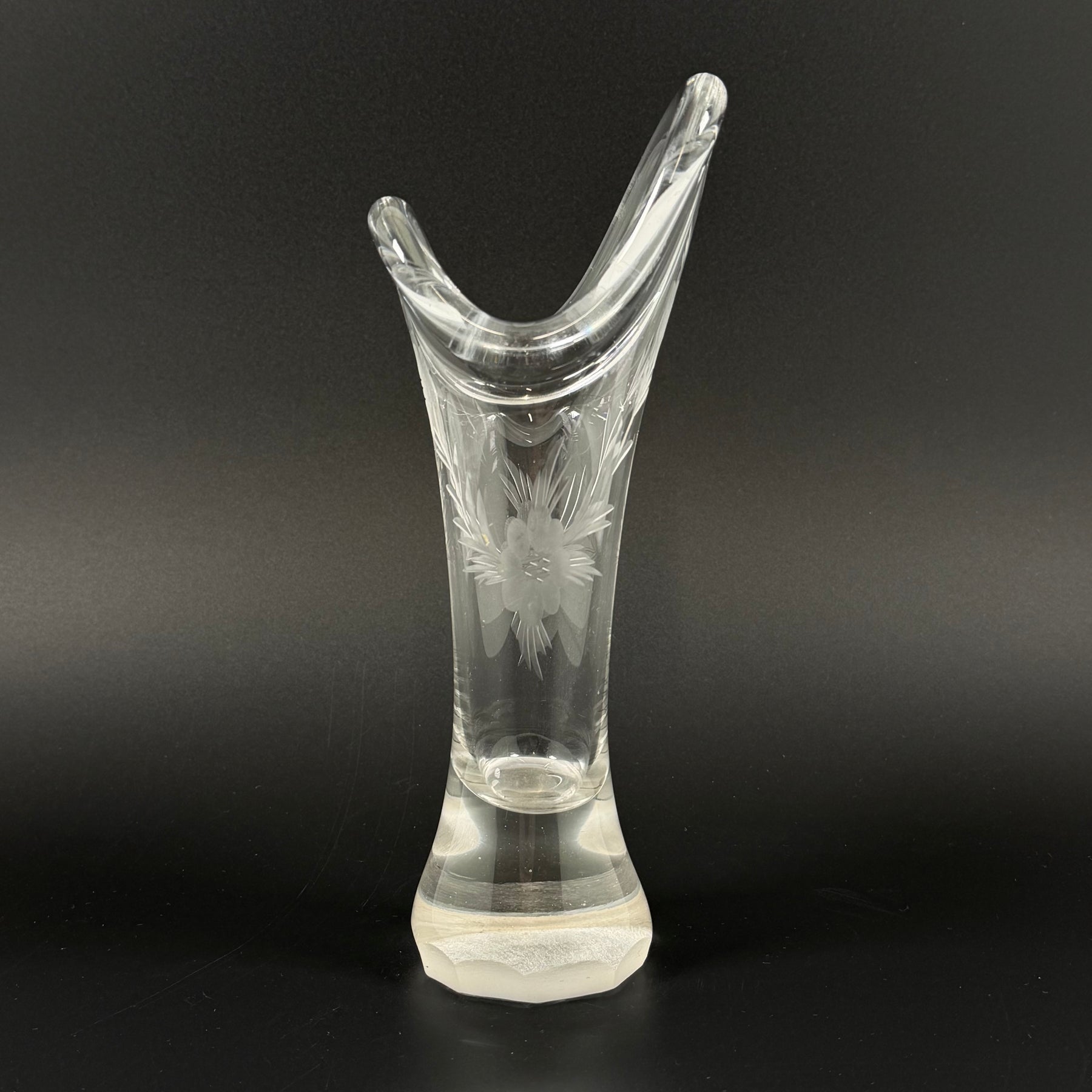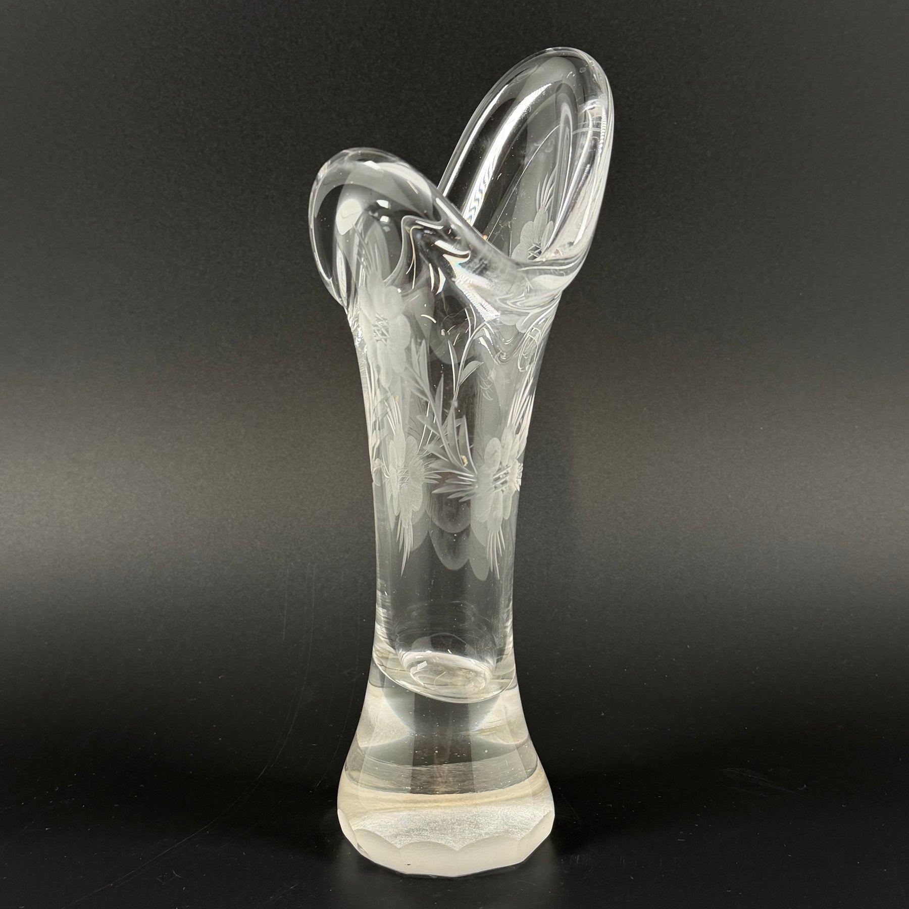 Retro kristallvas med ingraverat blommönster