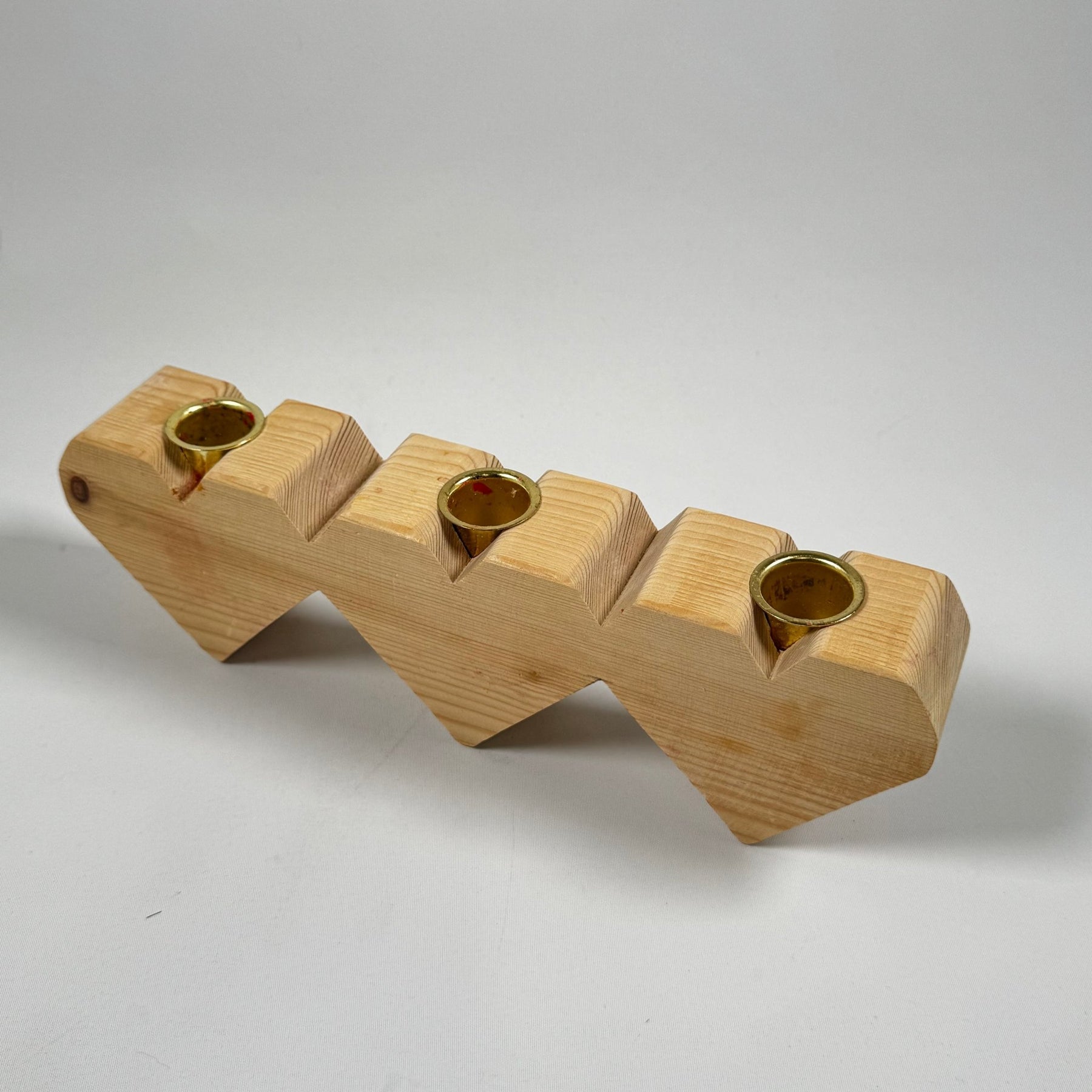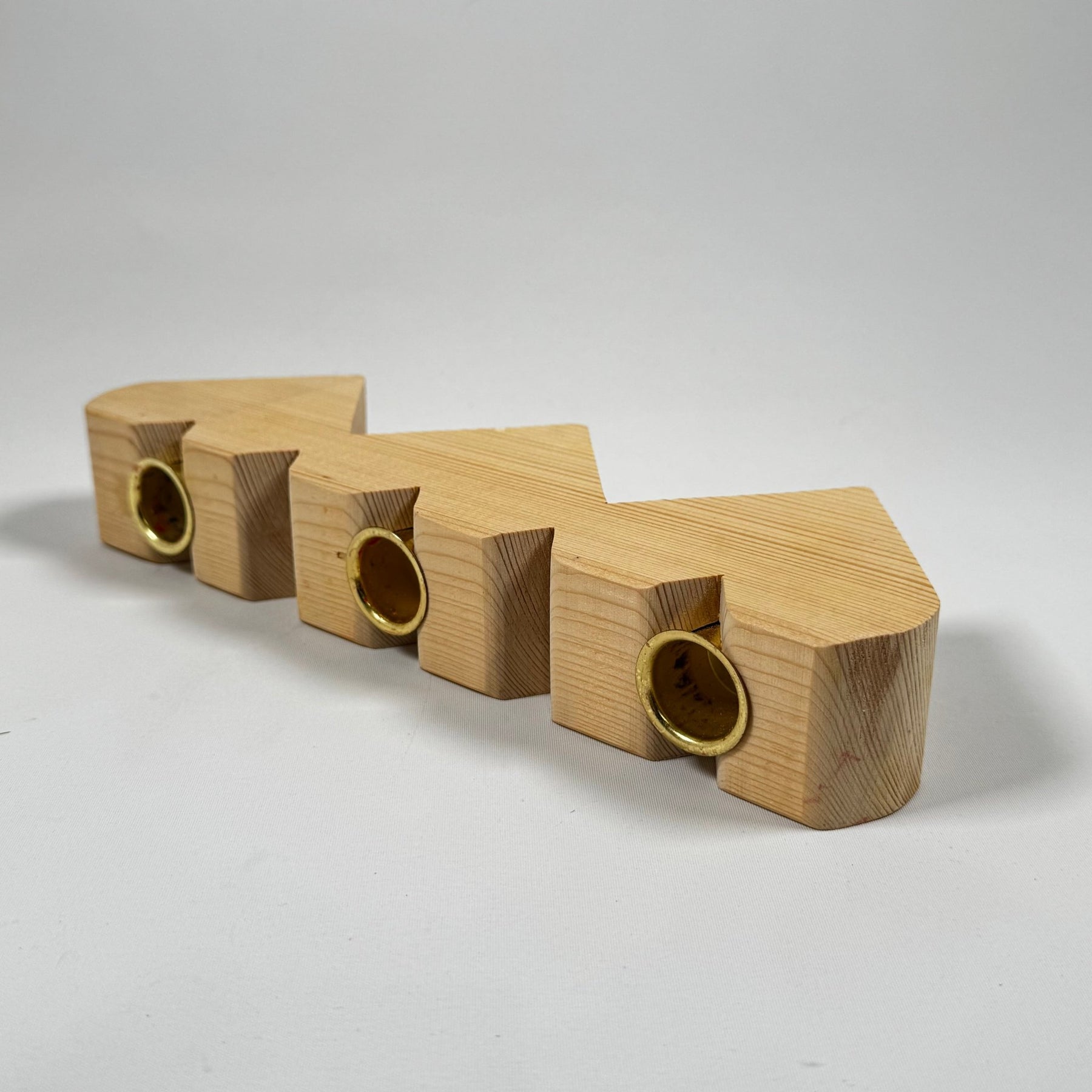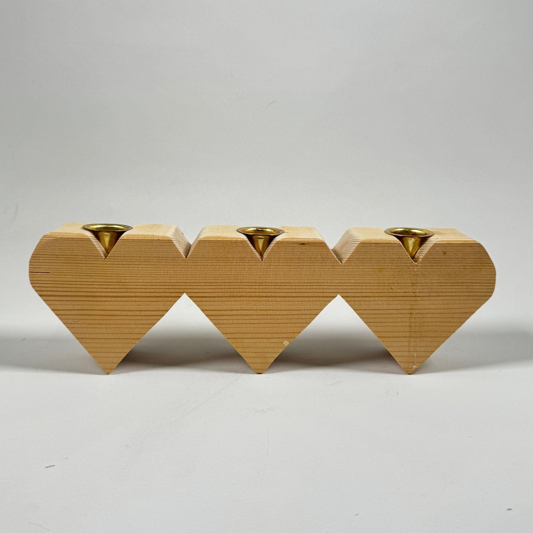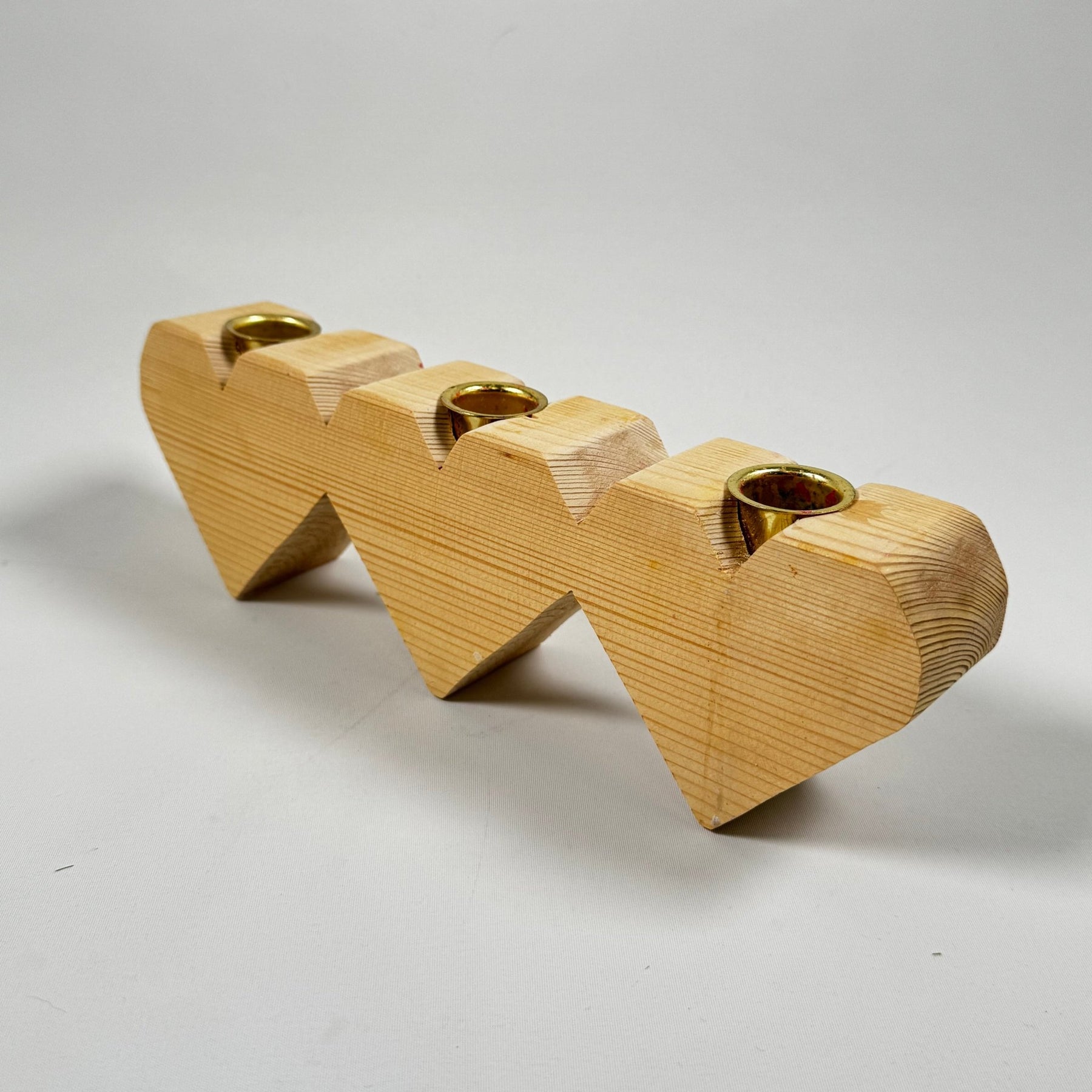 Denna ljusstake är designad som en serie av sammanlänkade hjärtan, perfekt för att skapa en varm och inbjudande atmosfär i varje rum. Handgjord med ljus träfinish och inbäddade ljushållare i mässing, vilket ger en elegant touch. Den är inte bara vacker utan också praktisk och passar utmärkt på både matbordet och hyllan. Begagnad men i utmärkt skick och redo att bidra till en mysig känsla i ditt hem.3. Produktspecifikationer