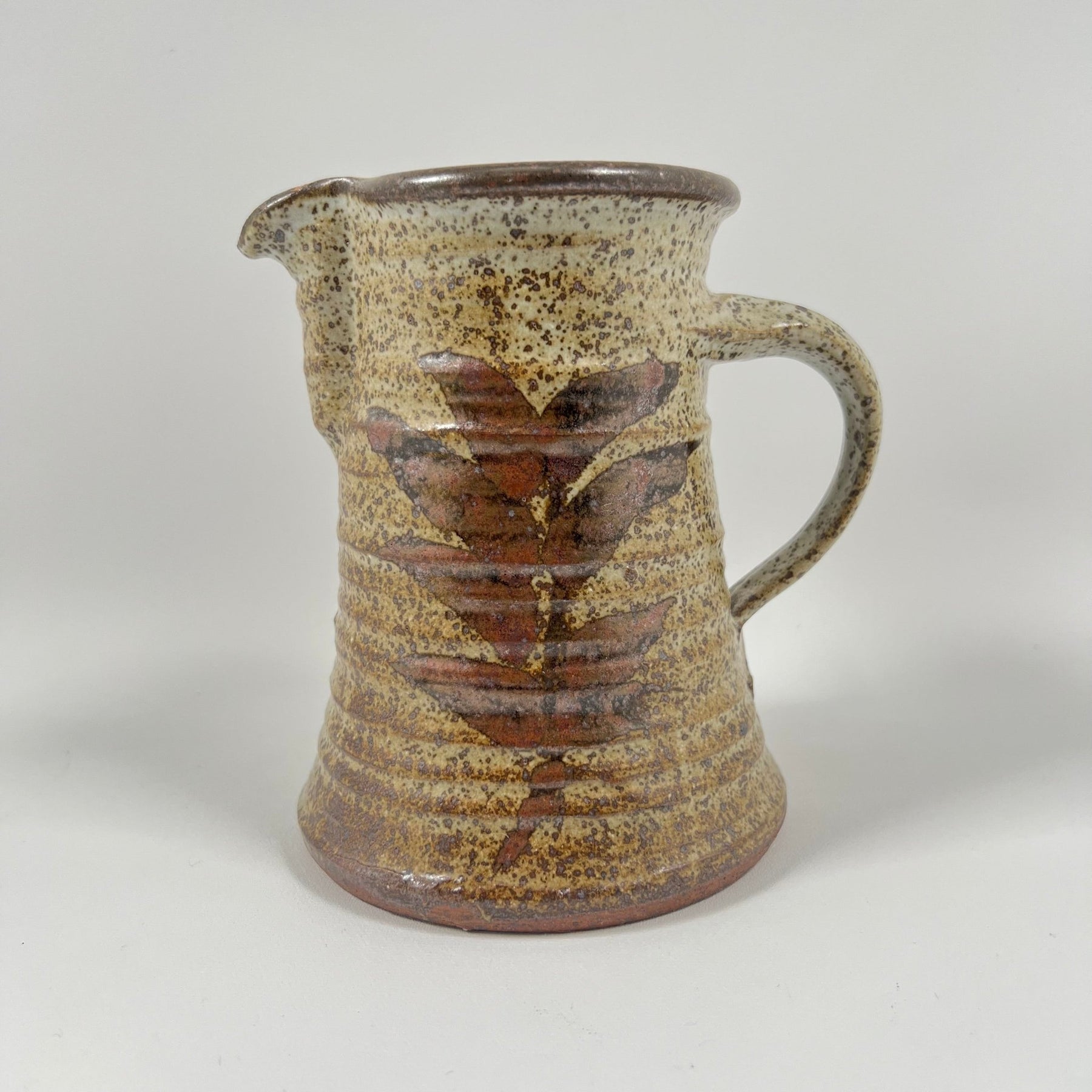 Denna keramikkanna är ett utmärkt exempel på hantverk i vintage stil. Användbar för dekoration eller som en del av ett serveringsset. Produkten är begagnad men i gott skick, vilket gör den till en charmig detalj i alla hem.