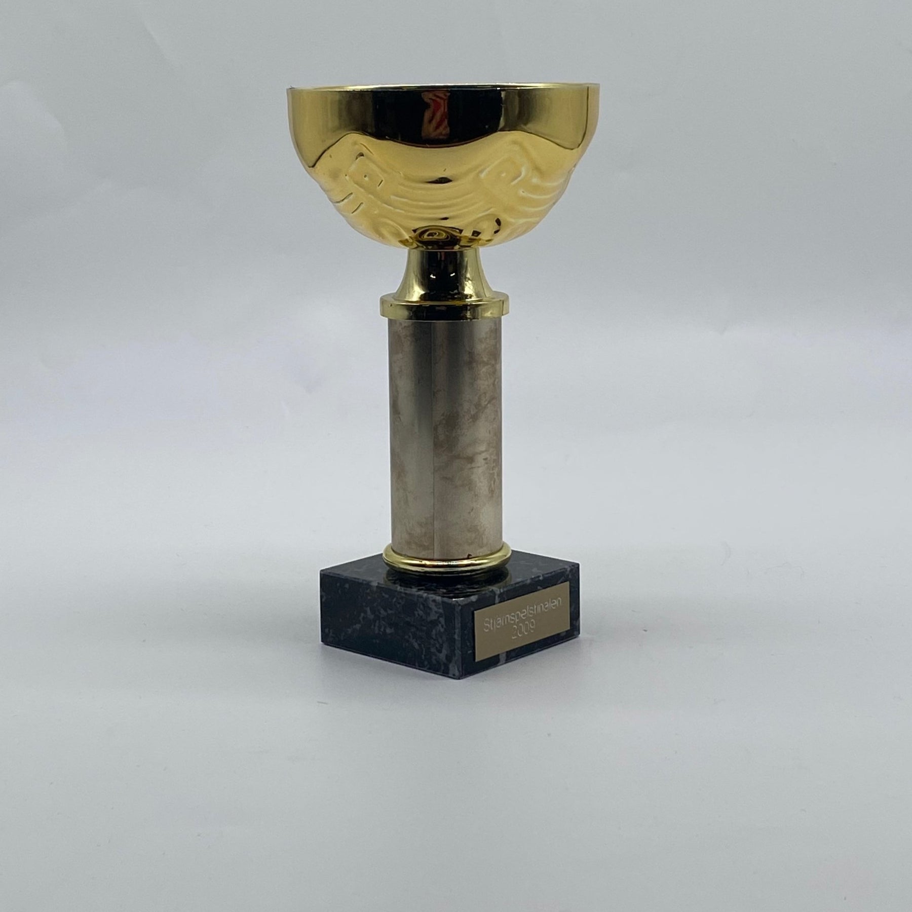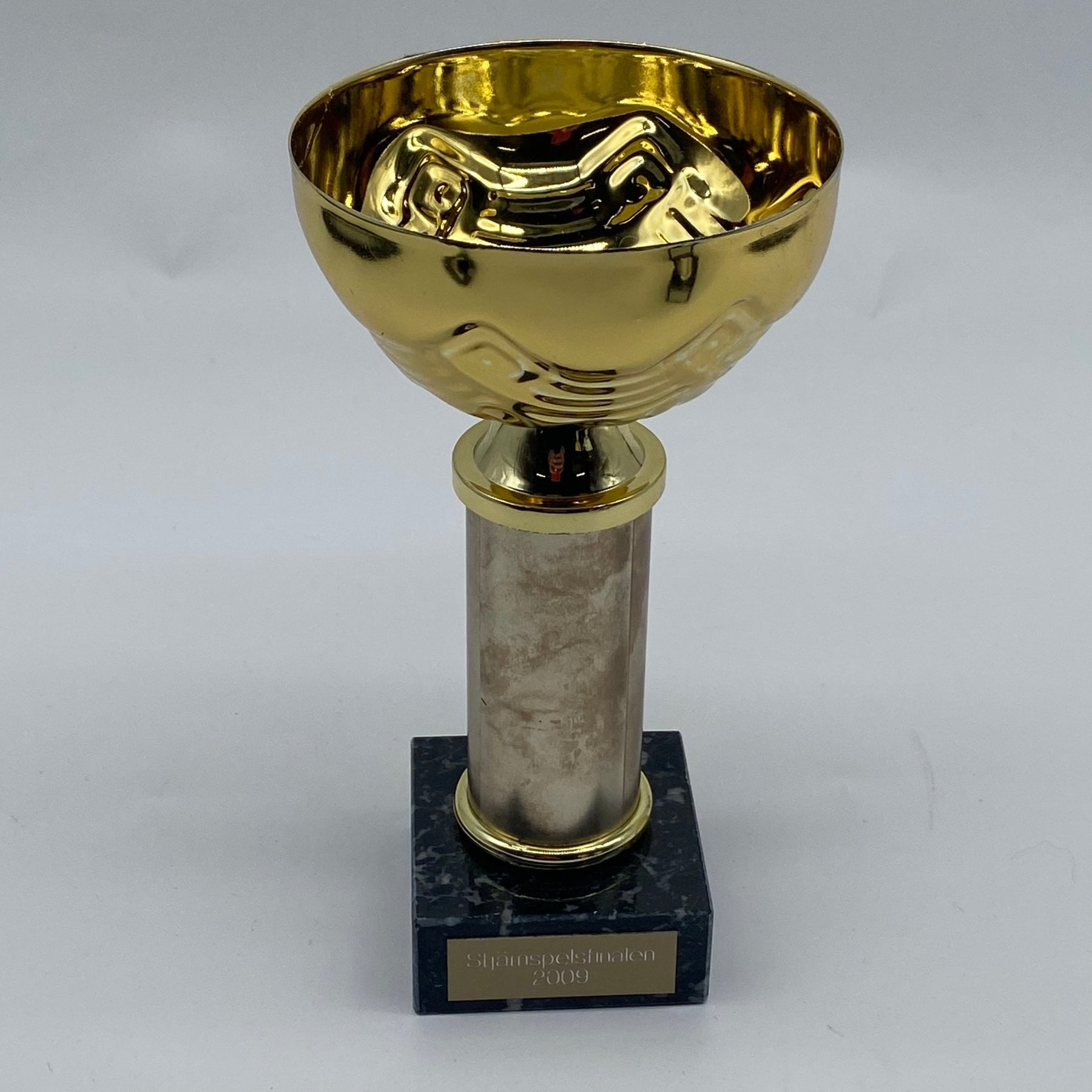 En dekorativ pokal med inskriptionen "Stjärnspelstävlingen 2009". Perfekt för prydnad eller som en del av en samling. Pokalen är begagnad men är i gott skick.