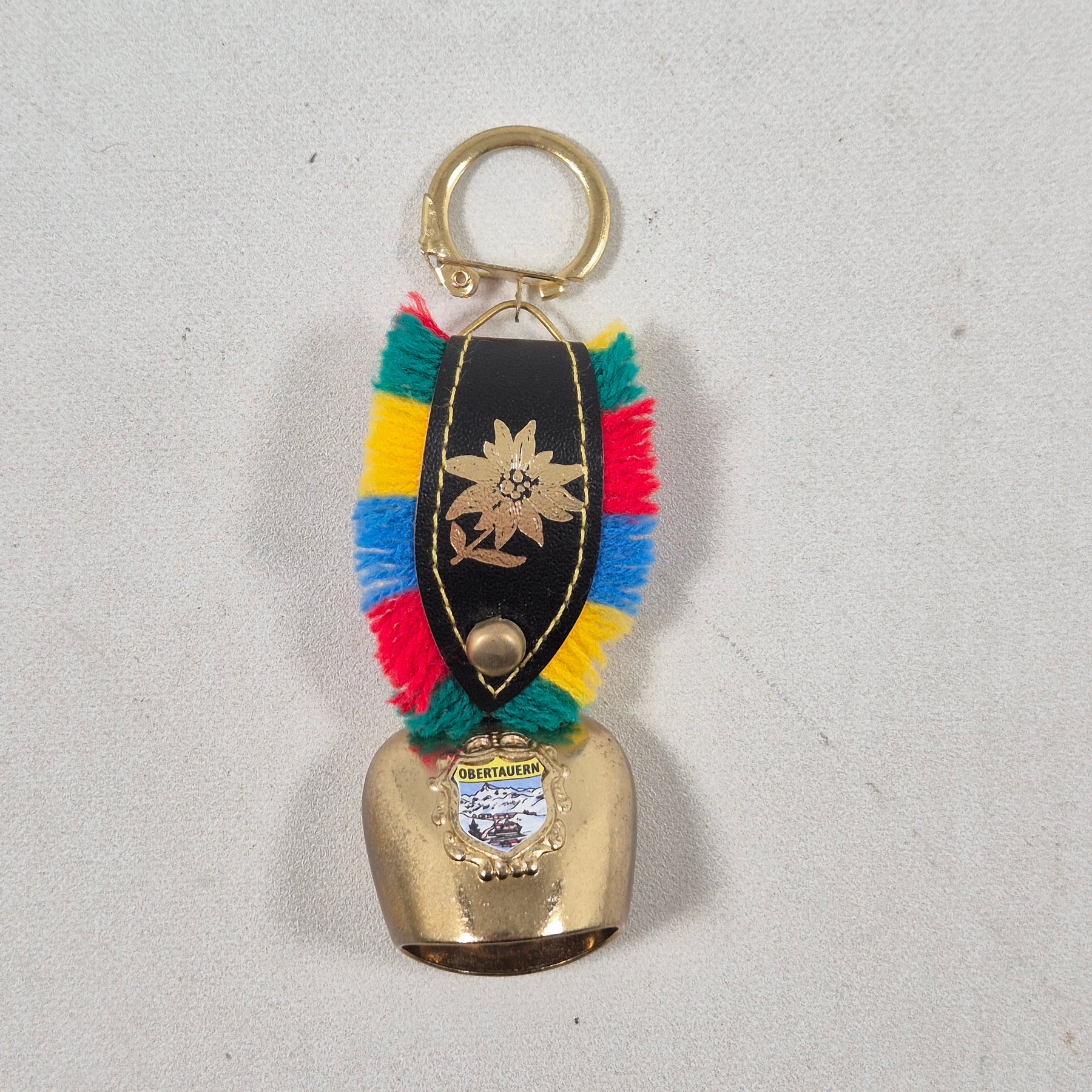 Denna nyckelring är inte bara praktisk, den är också en fröjd för ögat med sina livfulla färger och traditionella alptyska detaljer. Nyckelringen har en robust metallklocka prydd med en emaljerad sköld som visar Obertauern, vilket ger den en autentisk känsla av Alpernas charm. Perfekt för alla som älskar bergsregioner eller samlar på unika souvenirs. Skick: Begagnad men i välbevarat skick.Produktspecifikationer