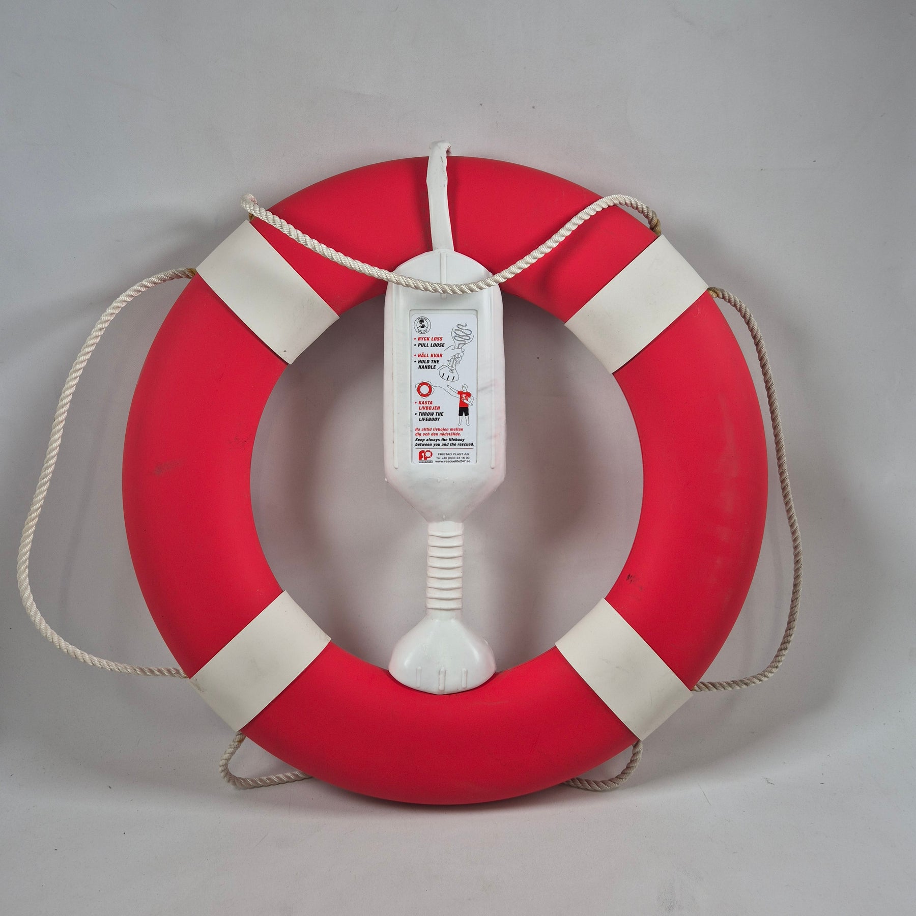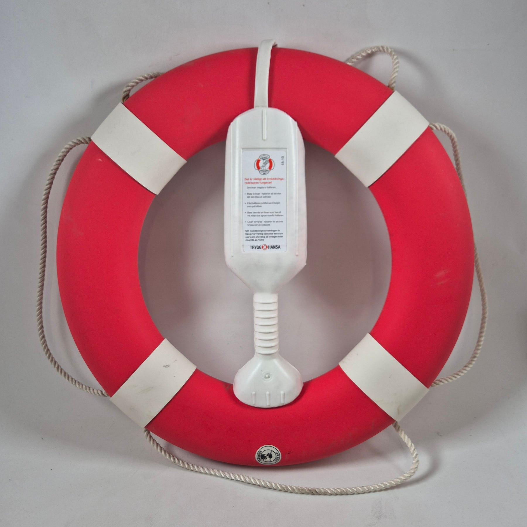 Denna räddningsboj från Fristad Plast är inte bara praktisk utan också en säkerhetsikon. Den röda färgen ger hög synlighet och den är utrustad med en stark rep och en hållare för effektiv användning under räddningsoperationer. Perfekt för den som är intresserad av båtliv eller vill skapa en säkerhetsorienterad atmosfär i sitt hem eller vid sin brygga. Begagnad men i mycket gott skick, vilket gör den till ett pålitligt och överkomligt alternativ.