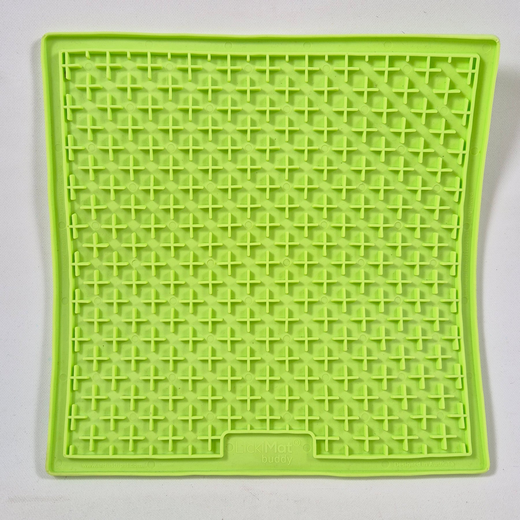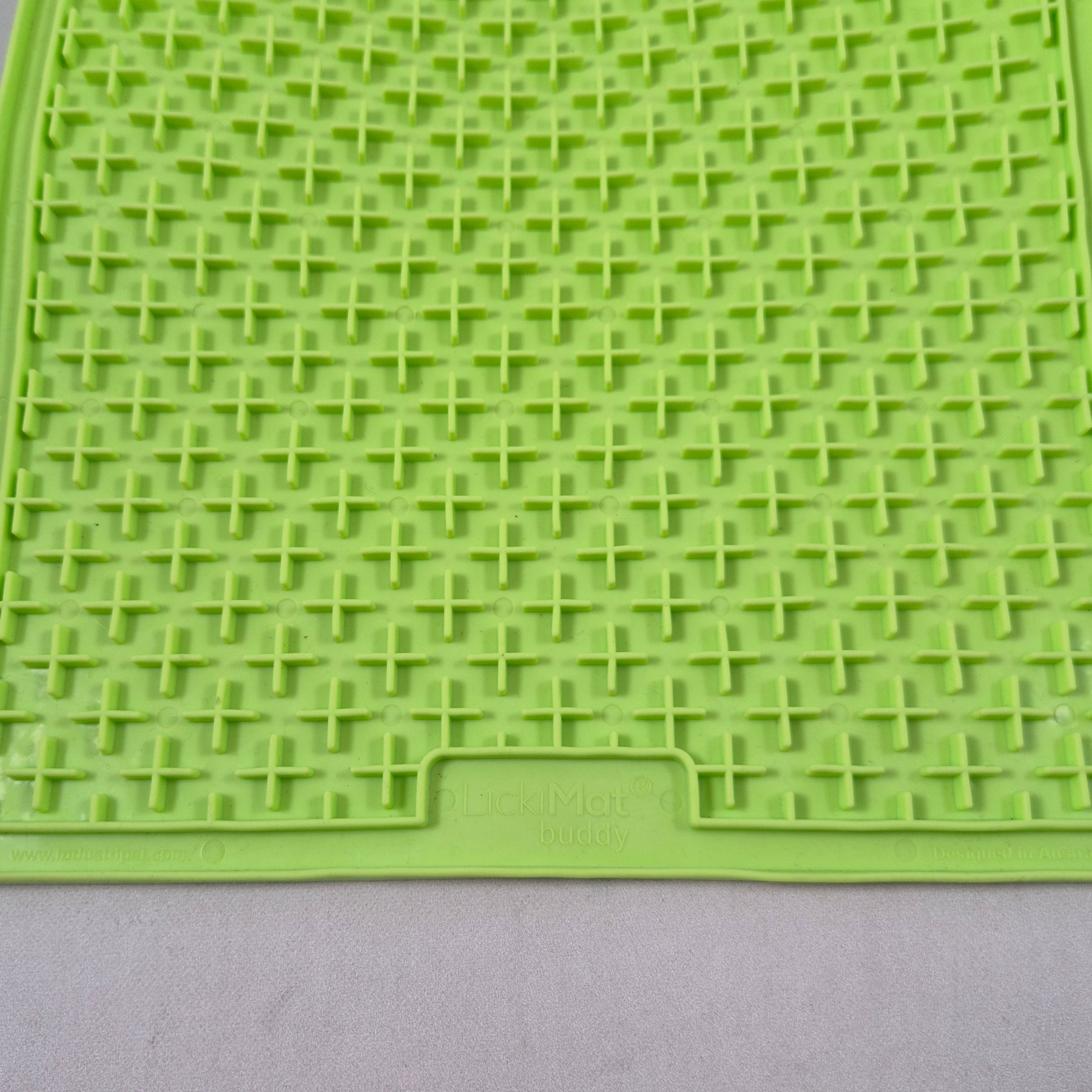 LickiMat Buddy är en matta speciellt designad för att ge husdjur sakta ner sin äthastighet och skapa en lugnande effekt under måltiderna. Denna matta med sitt unika kors- och kryssmönster gör att du kan stryka på godsaker eller paté, vilket ger ditt husdjur en stimulerande upplevelse. Mattan är tillverkad av giftfri matkvalitet silikon, vilket gör den både säker och hållbar. Perfekt för alla typer av husdjur, LickiMat Buddy bidrar till bättre matsmältning och underhållning.Produktspecifikationer