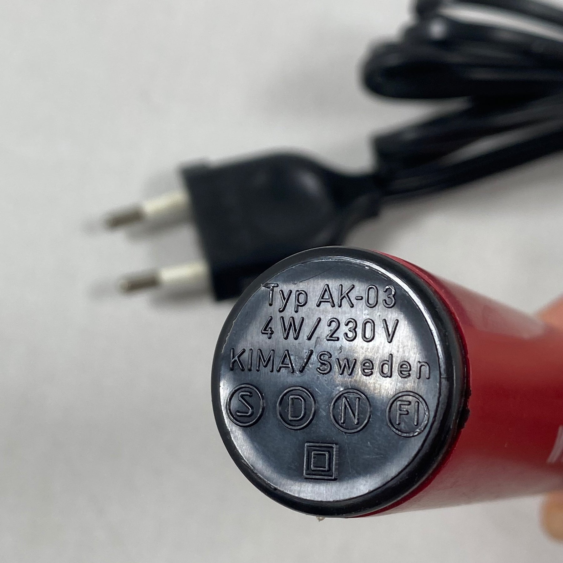 Praktisk och robust elektrisk skotork från KIMA Sweden, modell AK-03 (4W / 230V). Perfekt för att torka skor, handskar eller mindre utrymmen snabbt och effektivt. Enkel att använda – anslut bara till eluttaget och låt värmen göra jobbet.