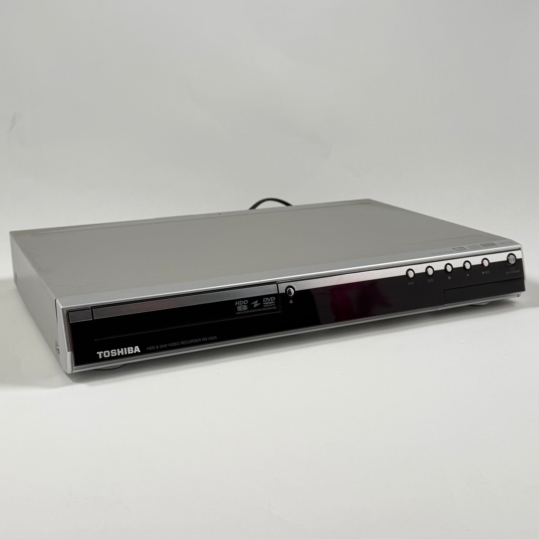 Denna Toshiba HDD & DVD video recorder kombinerar flexibiliteten av både en hårddiskinspelare och en DVD-spelare, vilket gör den idealisk för dem som värdesätter både praktisk funktionalitet och hållbarhet. Med möjligheten att spela in direkt på hårddisken eller DVD-skivor passar enheten perfekt för alla dina multimedia behov. Dess kompakta och eleganta design gör den till ett diskret tillskott till varje vardagsrum. Den är begagnad men väl underhållen och i mycket gott skick.Produktspecifikationer