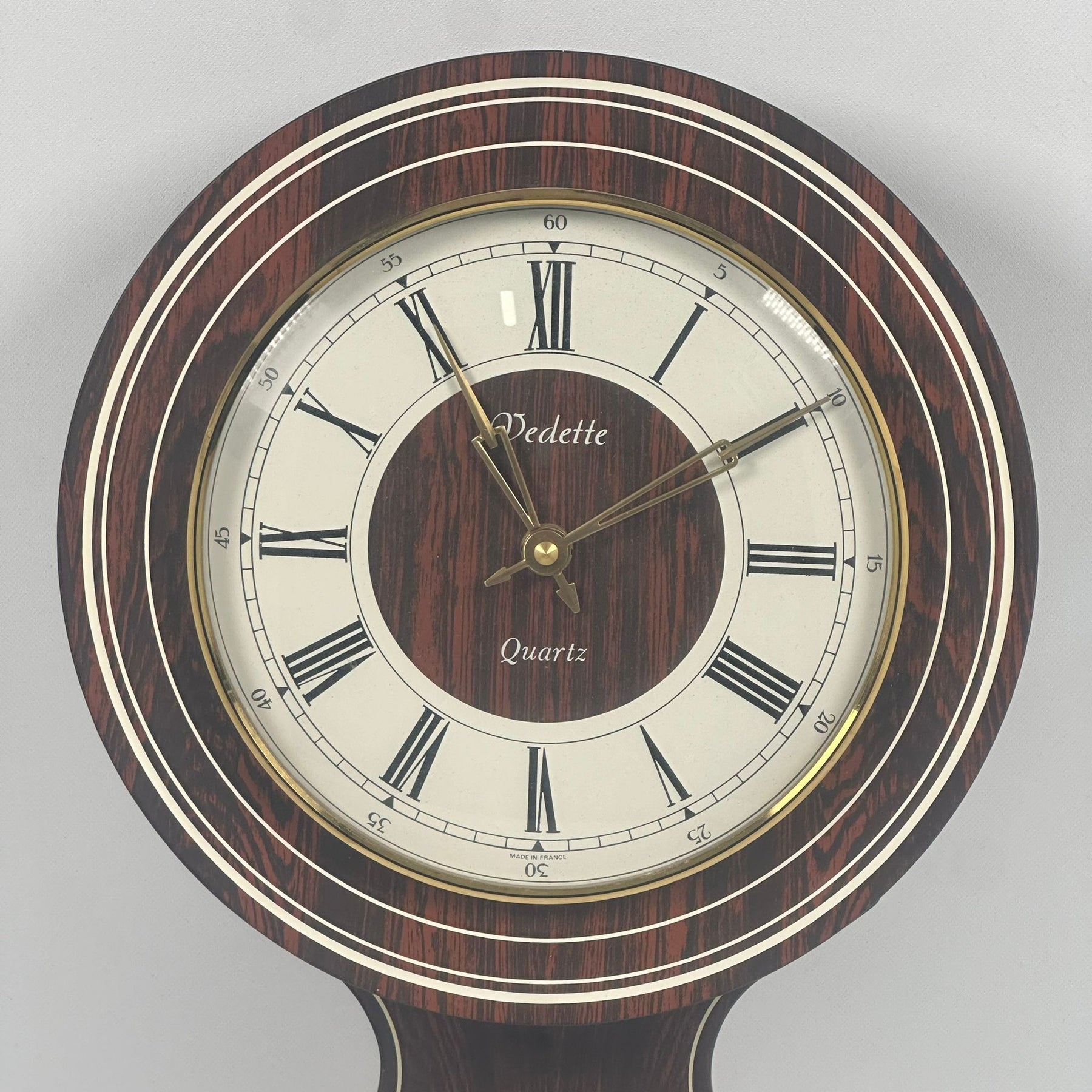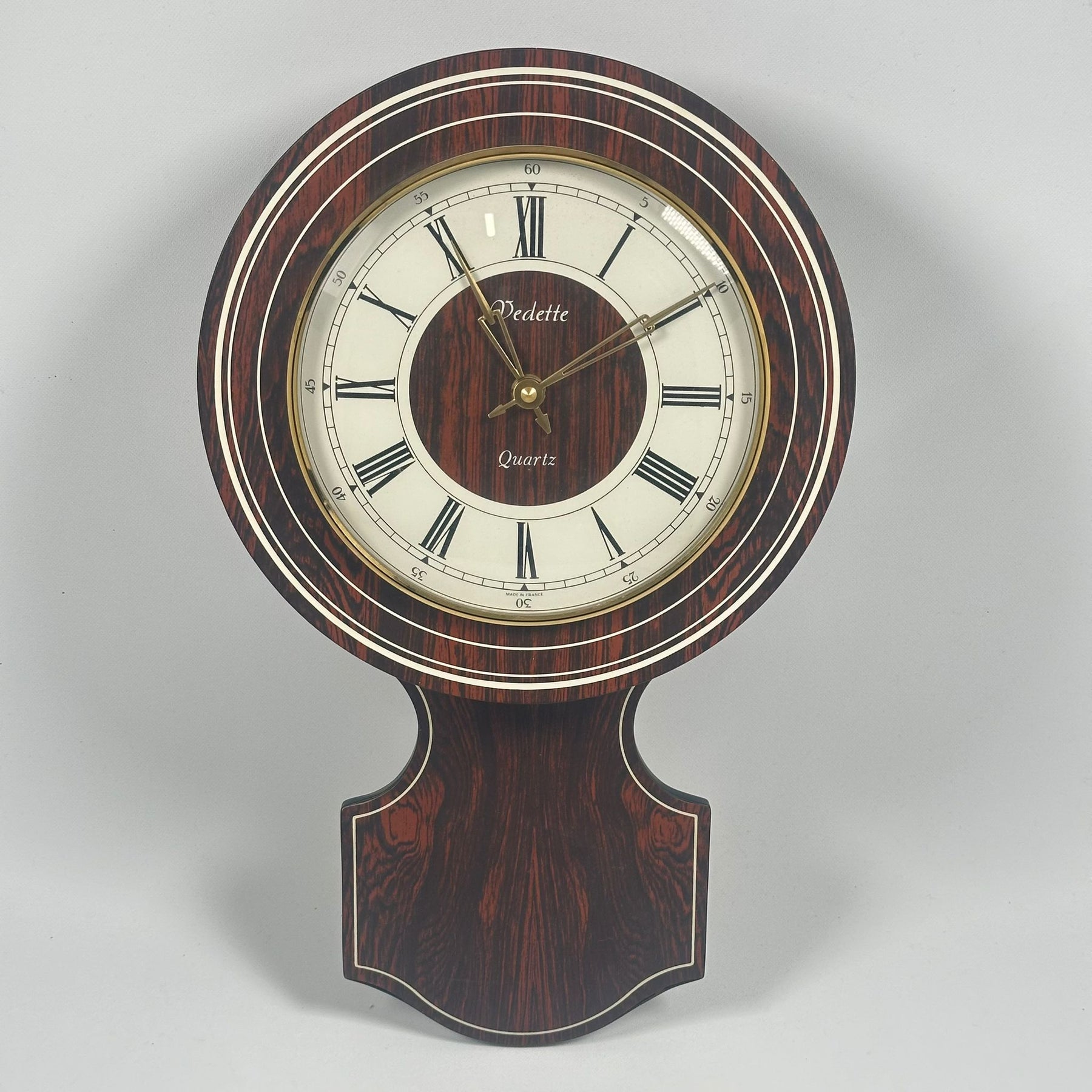 Klassisk väggklocka i trä med romerska siffror