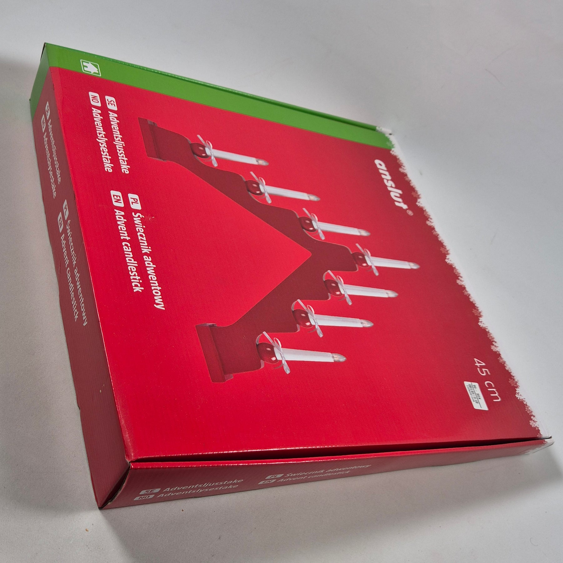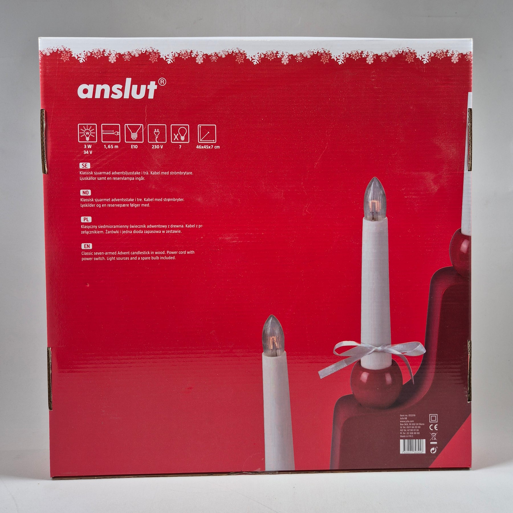 Adventsljusstaken är en klassisk juldekor som höjer stämningen i vilket hem som helst under adventstiden. Tillverkad av Anslut, denna modell har sju ljuskällor och är tillverkad i trä med vita ljus. Designen är både tidlös och modern, vilket gör den till ett perfekt tillskott i juldekorationerna. Ljusstaken är ny men kommer i öppnad förpackning.