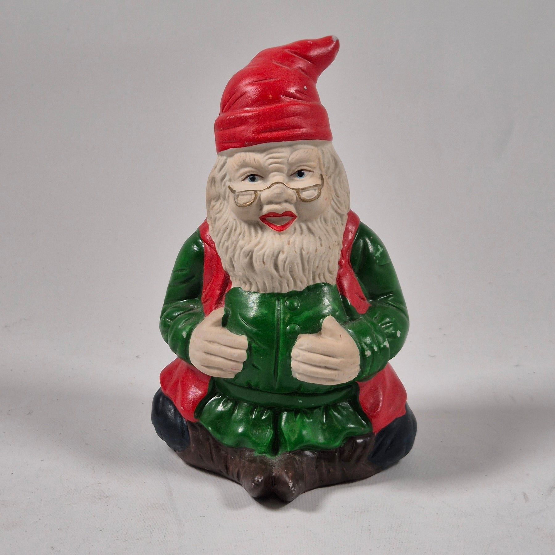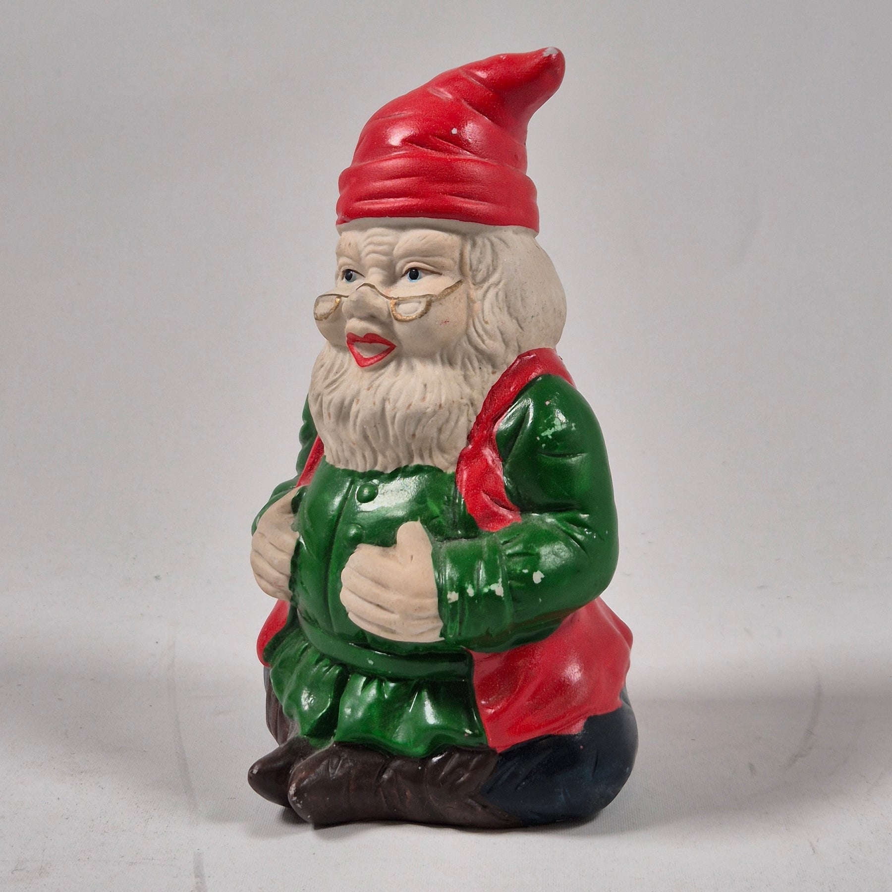 Denna dekorativa trädgårdstomte i keramik är en riktig ögongodis, perfekt för att addera en personlig och lekfull touch i din trädgård eller i hemmet. Tomten är klädd i en traditionell röd luva, gröna kläder och charmiga små glasögon som ger en känsla av vishet. Trots att den är begagnad finns det bara mindre bruksspår vilket ger artikeln en fin patina och äkthet.