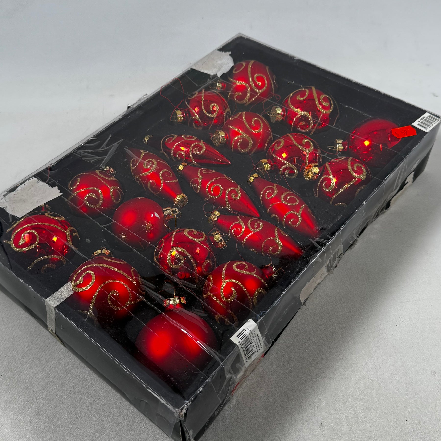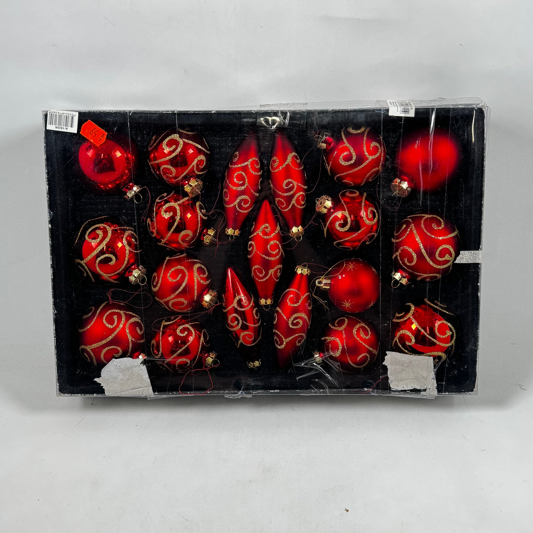 Dessa juldekorationer är utsmyckade med eleganta guldspiral mönster på en glänsande röd bakgrund, vilket ger en klassisk och tidlös känsla till din julgran. Kulorna är inköpta noggrant för att säkerställa hög kvalité och heltäckande design. Perfekt för både moderna och traditionella juldekorationer och ett måste för den kommande julen! Produkten är begagnad men är fortfarande i gott skick, även om förpackningen uppvisar vissa bruksspår.Produktspecifikationer