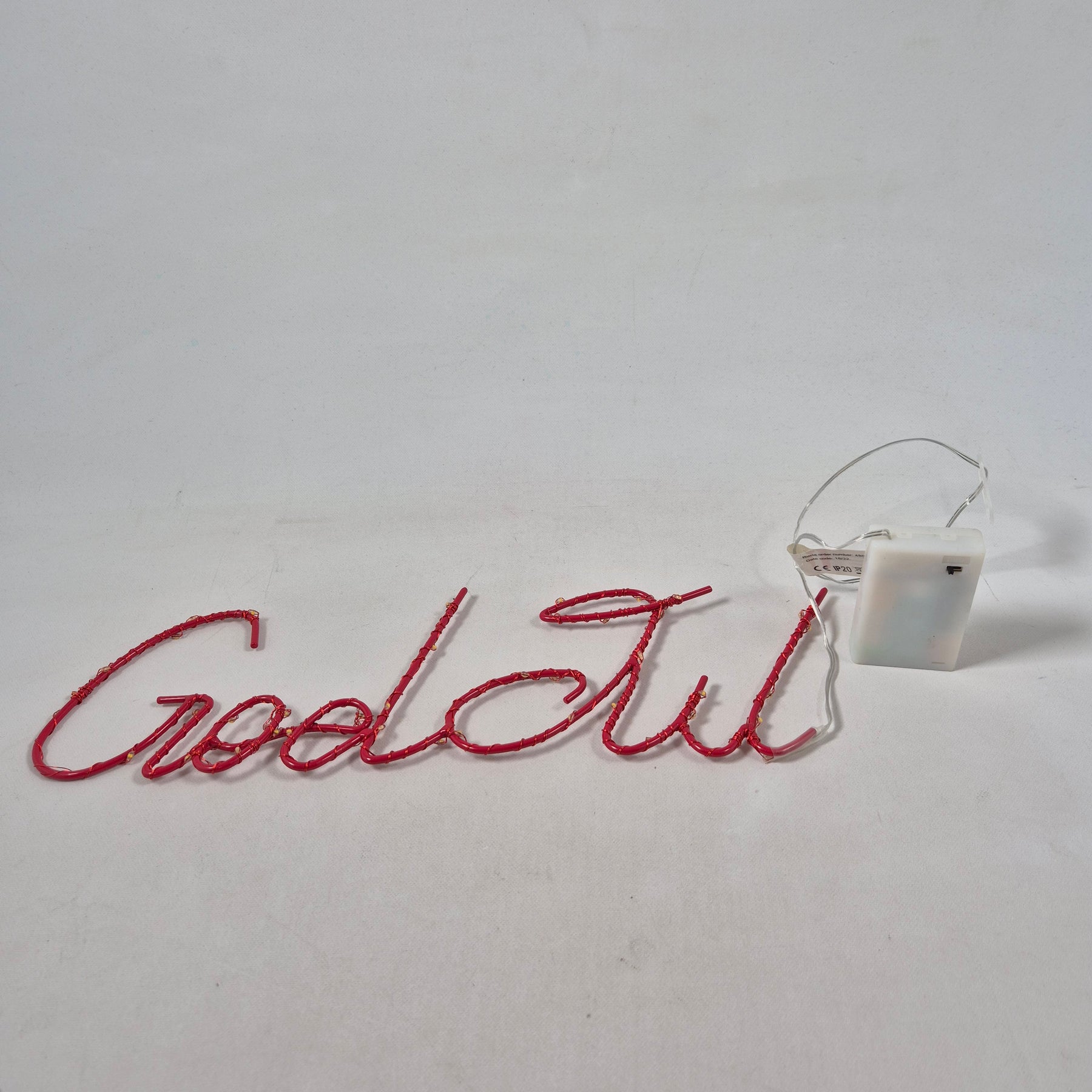 Skapa en varm och välkomnande atmosfär med denna härliga ljusskylt som lyser upp ordet "God Jul". Dess glänsande röda design och inbyggda belysning gör den till en iögonfallande prydnad för vilket hem som helst under högtiderna. I fint skick och redo att lyfta feststämningen!