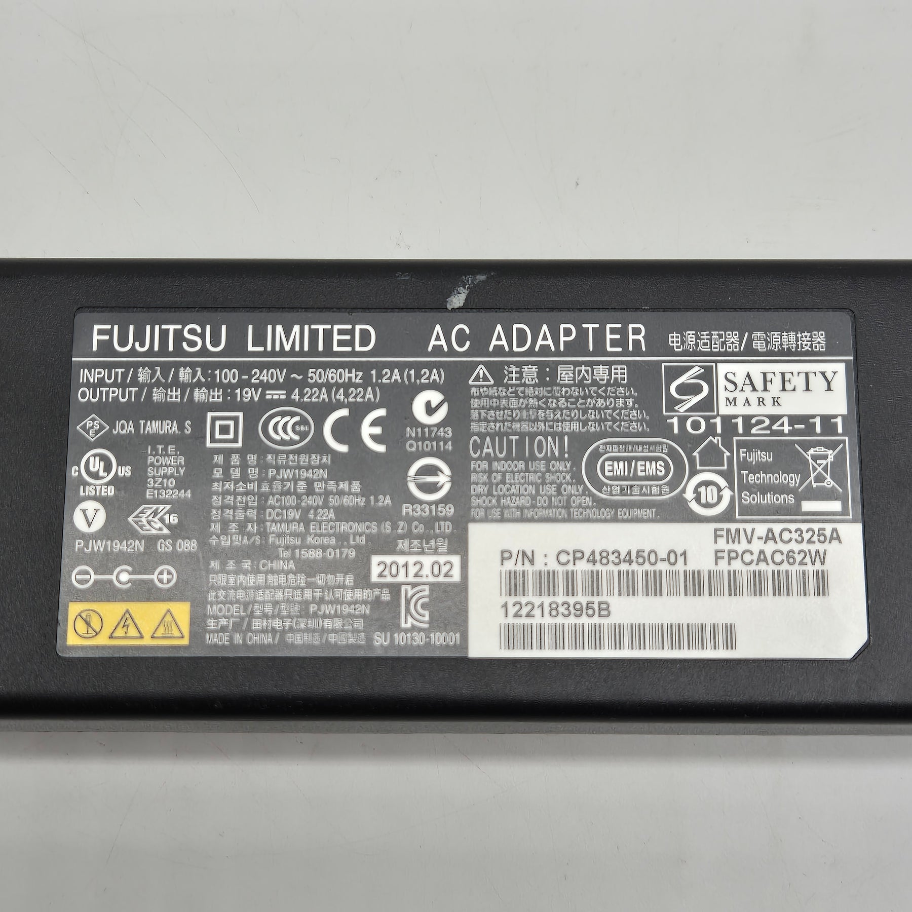 Denna högkvalitativa Fujitsu AC adapter är designad för att leverera stabil och effektiv ström till din bärbara dator eller annan kompatibel enhet. Adaptern är märkt med alla nödvändiga säkerhetscertifikat, vilket garanterar dess tillförlitlighet och säkerhet. Dess kompakta design gör den lätt att bära med sig och lagras enkelt. Skicket är begagnat men adaptern är i mycket gott skick och redo att användas omedelbart.Produktspecifikationer