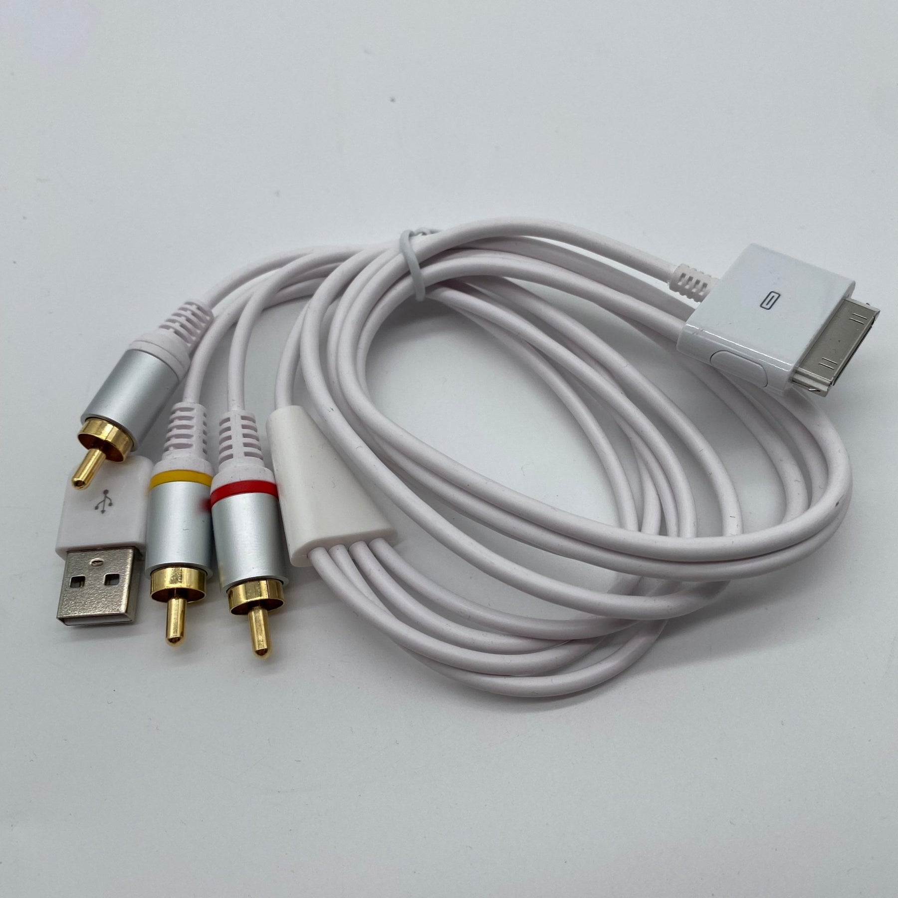 Denna anslutningskabel är perfekt för att ansluta dina äldre Apple-enheter till ditt hemmabiosystem eller en dator. Kabeln har en Apple 30-pins dockningskontakt, standard USB och RCA ljudanslutningarna för video och stereo ljud. En idealisk lösning för att njuta av din musik och video från äldre Apple-enheter på en större skärm eller högtalarsystem. Skicket är begagnat men väl underhållet och fullt fungerande.