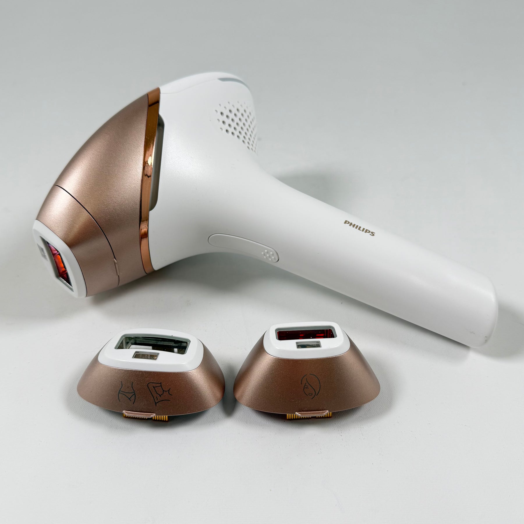 Denna avancerade hårborttagningsapparat från Philips är idealisk för dig som värderar både effektivitet och komfort. Apparaten är utformad för att användas på olika kroppsområden, med ett smärtfritt resultat tack vare dess skonsamma teknologi. Inkluderar två avtagbara huvuden för skräddarsydd användning. Utrustad med flera intensitetslägen som gör att du kan anpassa behandlingen efter din hudtyp. Produkten är begagnad men i mycket gott skick, komplett med alla tillbehör och en praktisk förvaringsväska.
