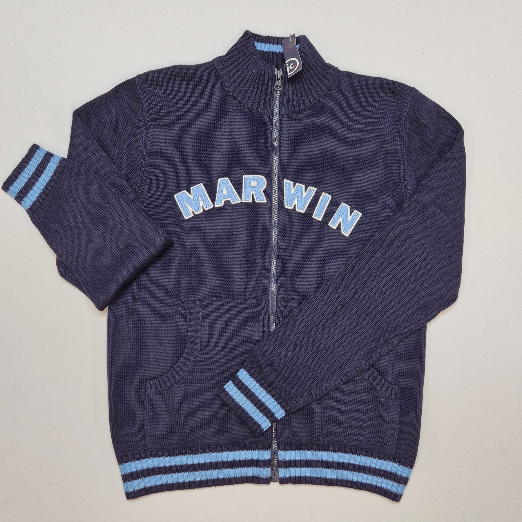 Denna collegetröja från Marwin Sport är inte bara bekväm utan också stilren med sina blå och ljusblå ränder som accentuerar ärmar och krage. Den är perfekt för såväl aktiv fritid som avslappnade hemmakvällar. Är i mycket gott skick och ser nästan oanvänd ut, vilket gör den till ett utmärkt köp för den sportintresserade eller som ett trendigt retroinslag i garderoben.