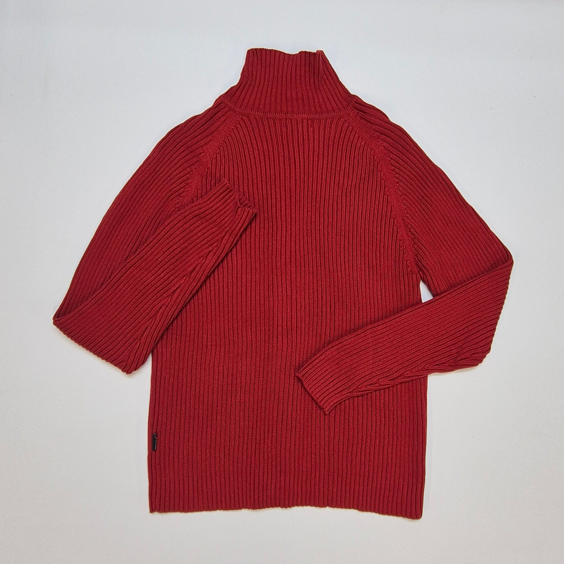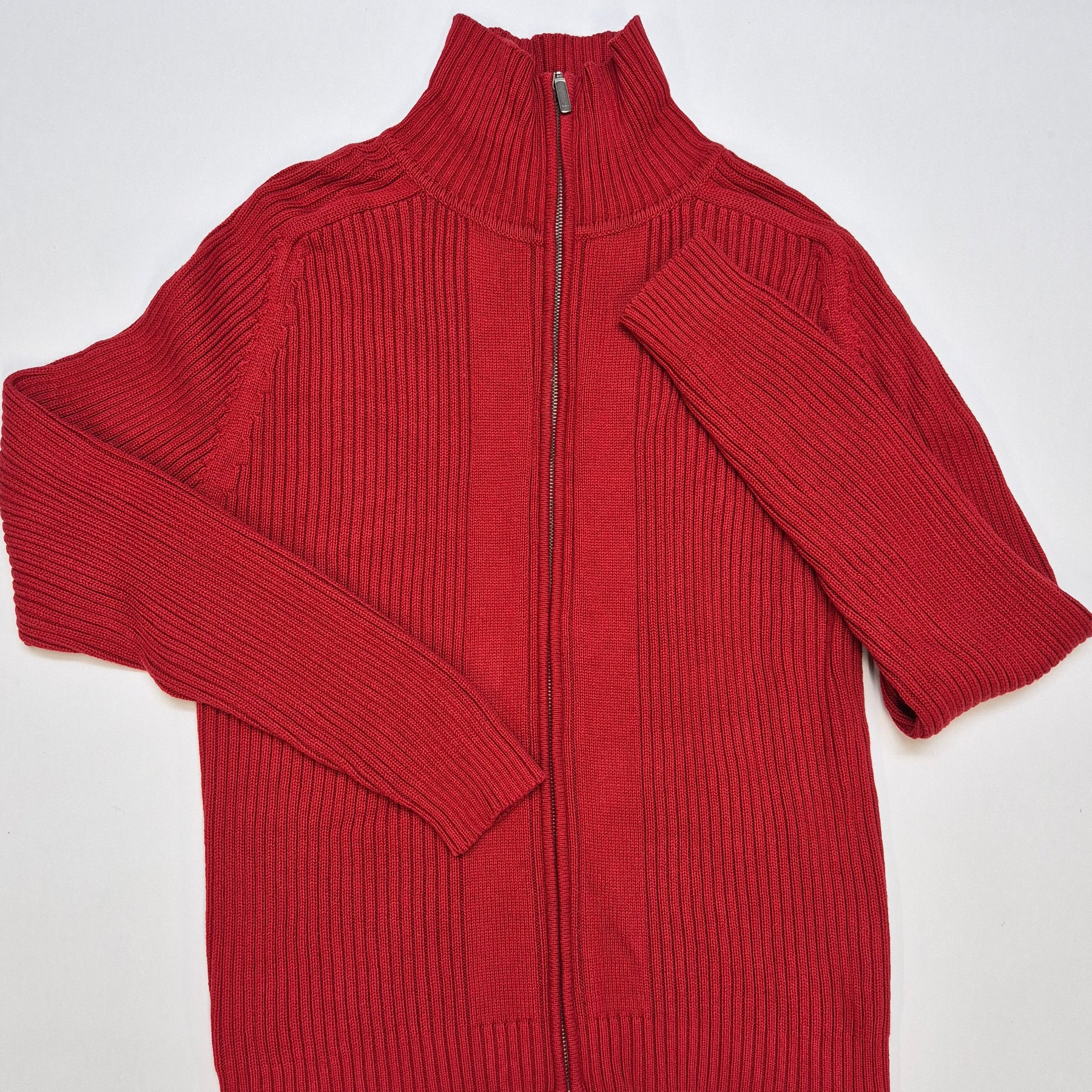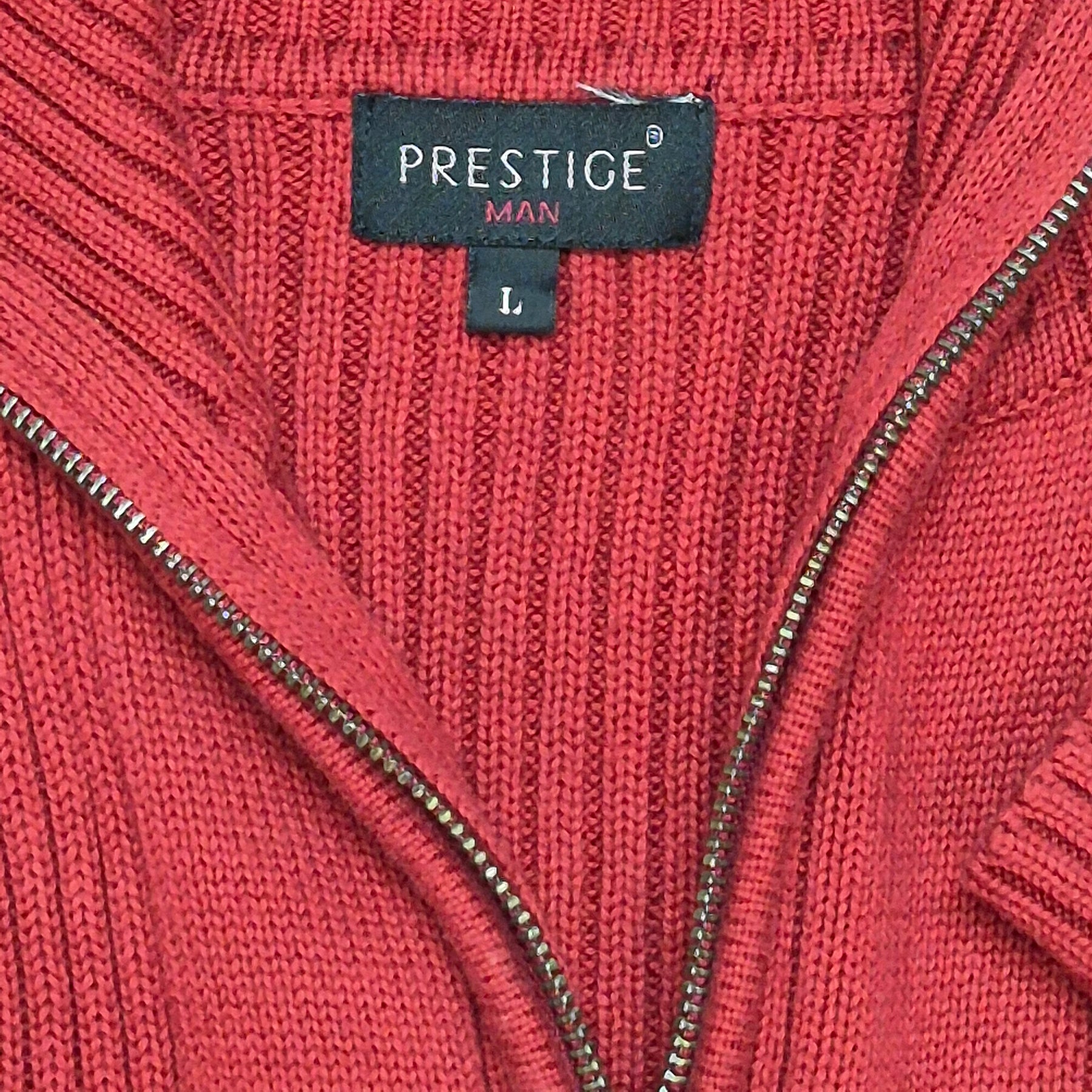 Denna herrtröja från Prestige erbjuder både komfort och stil. Tröjan är i en iögonfallande röd färg med en subtil strukturerad design. Med en lätt att använda dragkedja fram, är den perfekt för snabba stilverkningar. En utmärkt tillägg till din vardags- eller arbetsklädsel. Tröjan är begagnad men är fortfarande i mycket gott skick.