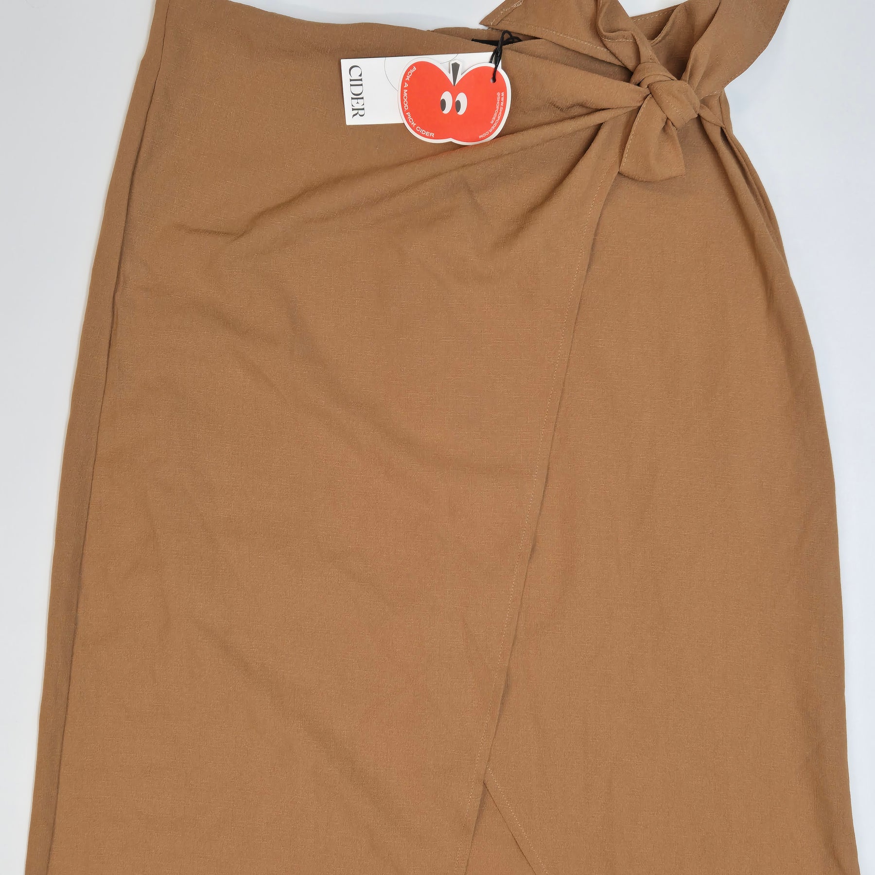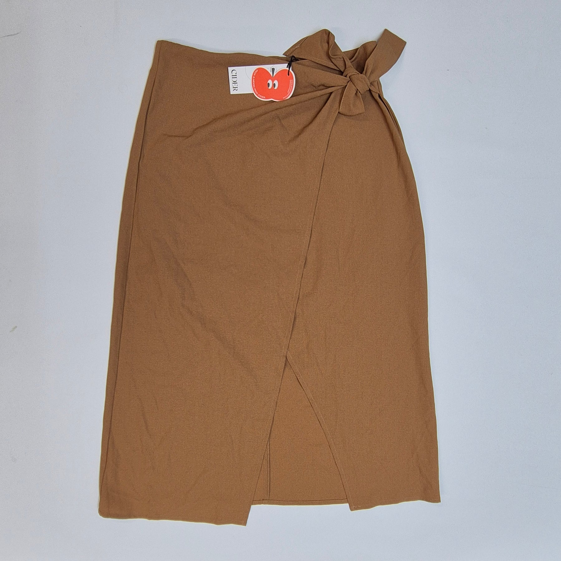 Denna fashionabla kjol är designad med en sofistikerad omlottstil och en dekorativ knytning vid sidan som ger en feminin touch. Tillverkad av Cider, garanterar den hög kvalitet och komfort. Den moderna designen och den neutrala färgen gör den lätt att matcha med andra plagg i din garderob. Kjolen är ny med original etiketter vilket gör den till ett utmärkt köp för den modeintresserade.Produktspecifikationer