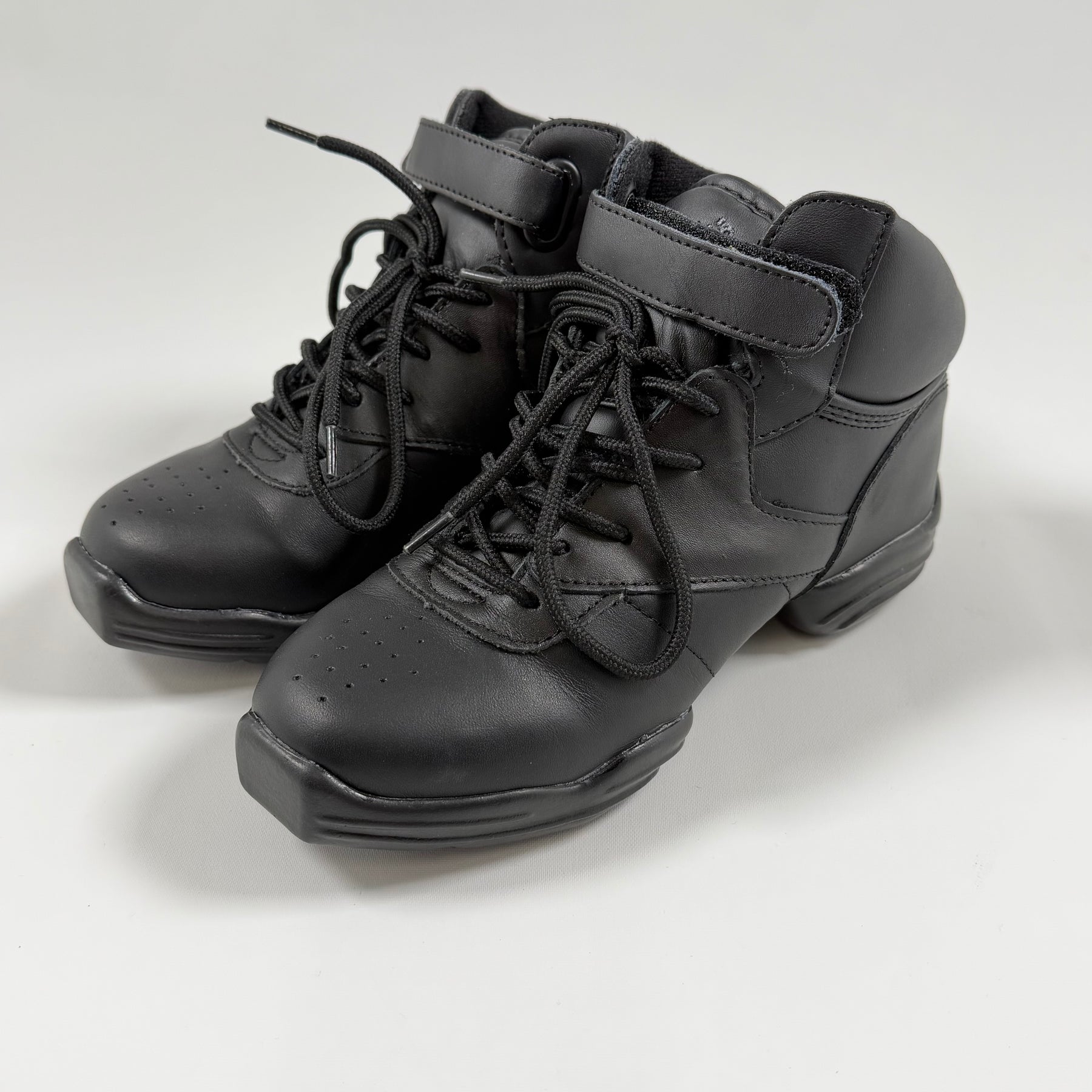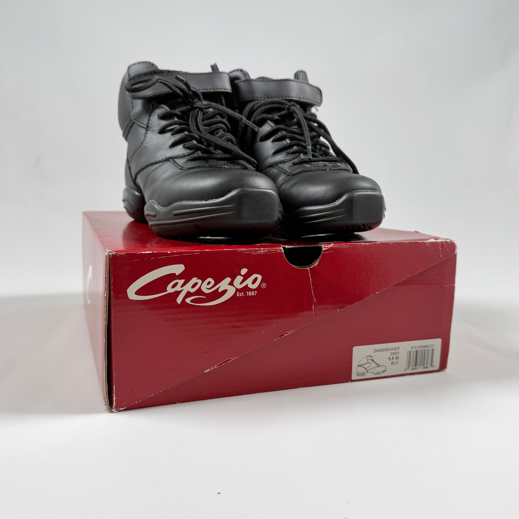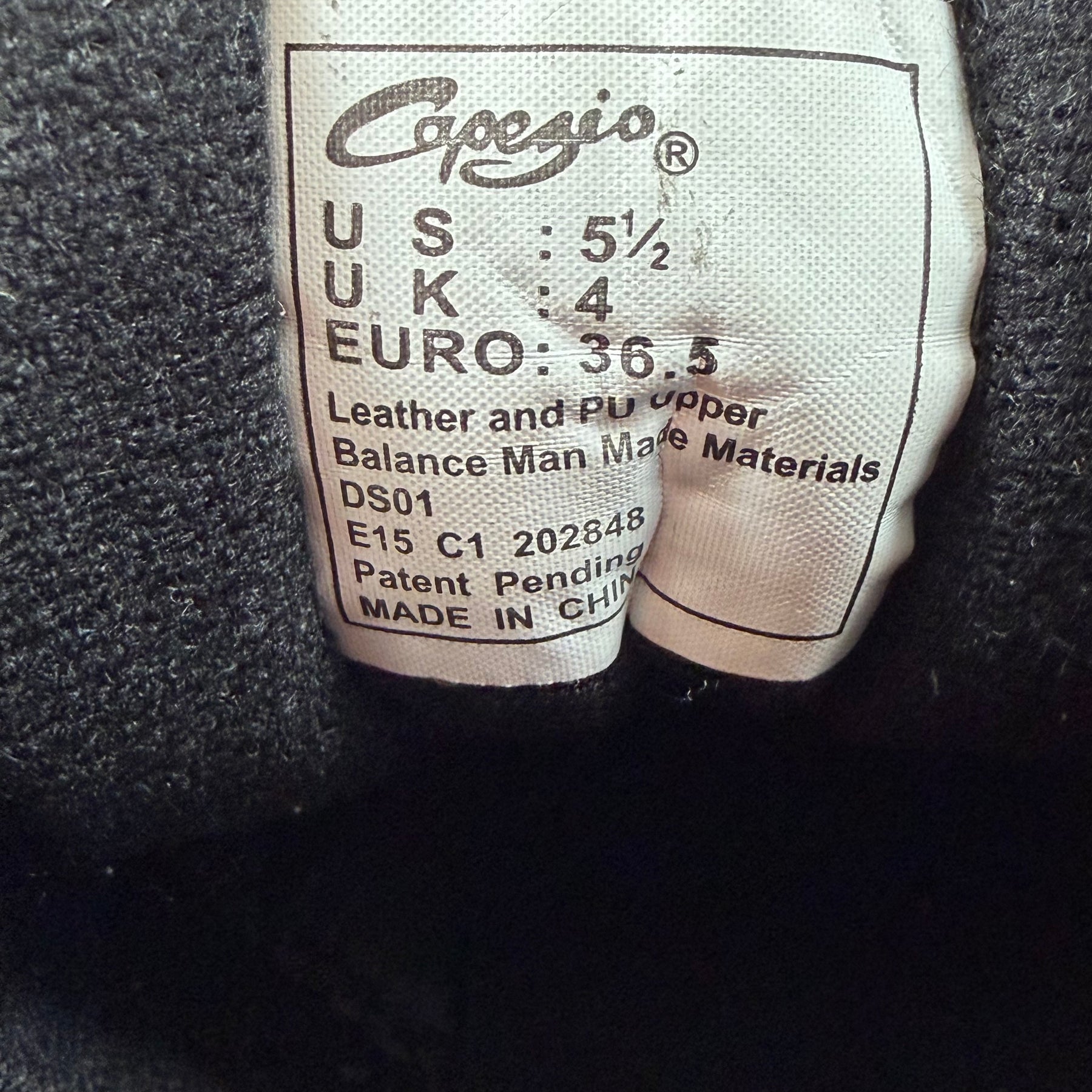 Capezio dansskor tillverkade av äkta läder och PU i övre delen, vilket garanterar både hållbarhet och komfort under långa träningspass. Skorna är ihopfogade med en konstruktion som ger utmärkt balanskänsla och stöd. Med sitt tidlösa utseende och höga funktionalitet passar dessa skor perfekt för all sorts dans. De är begagnade men i mycket gott skick, vilket gör dem till ett utmärkt val för såväl nybörjare som erfarna dansare.Produktspecifikationer