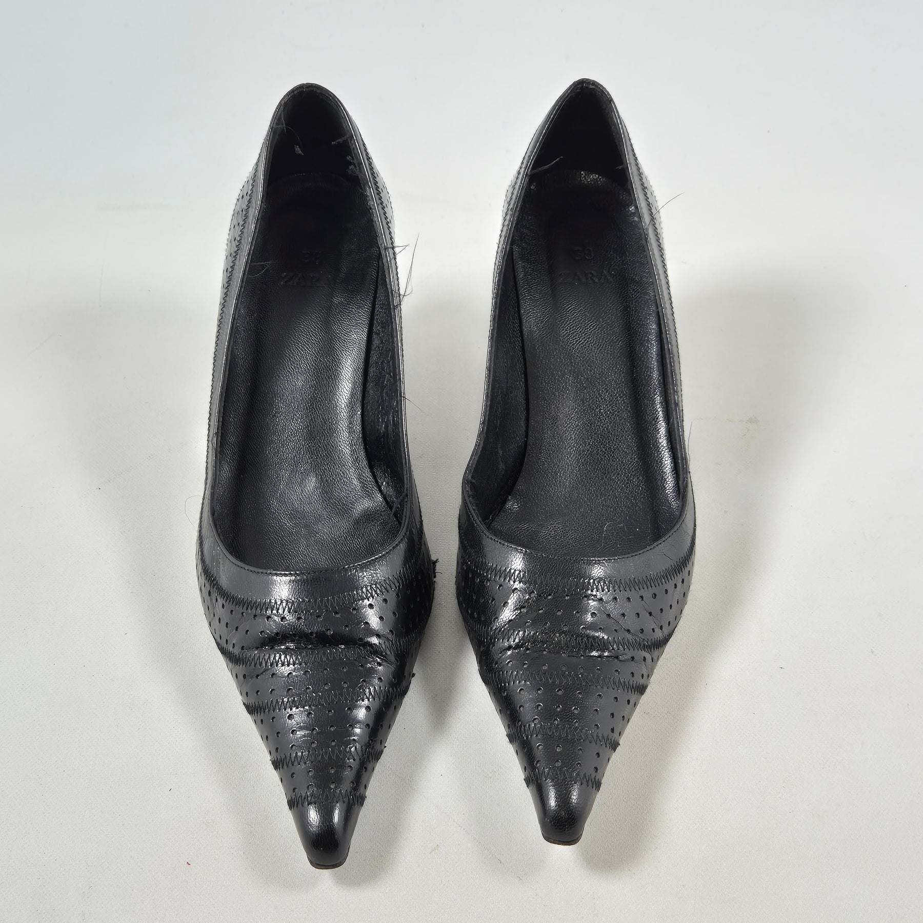 Zara Perforerade Pumps i Läder Storlek 38