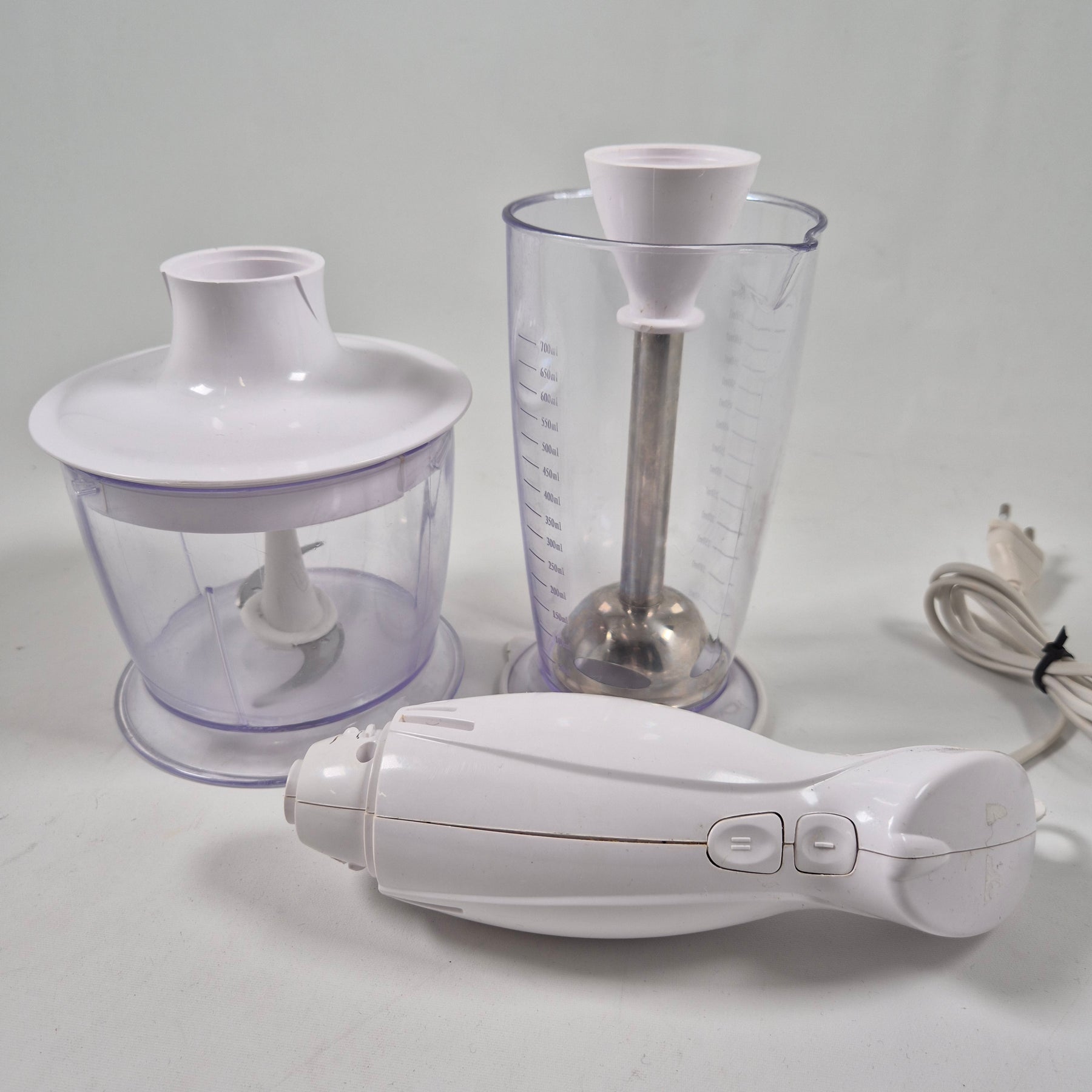 Denna Melissa stavmixer är idealisk för att snabbt och enkelt förbereda allt från soppor till smoothies. Med sin kraftfulla motor och medföljande skärtillbehör gör denna mixer köksarbetet enklare än någonsin. Mixerstavens kompakta design gör den lätt att förvara och rengöra. Trots att den är begagnad är skicket mycket gott och håller måttet för flera års användning.