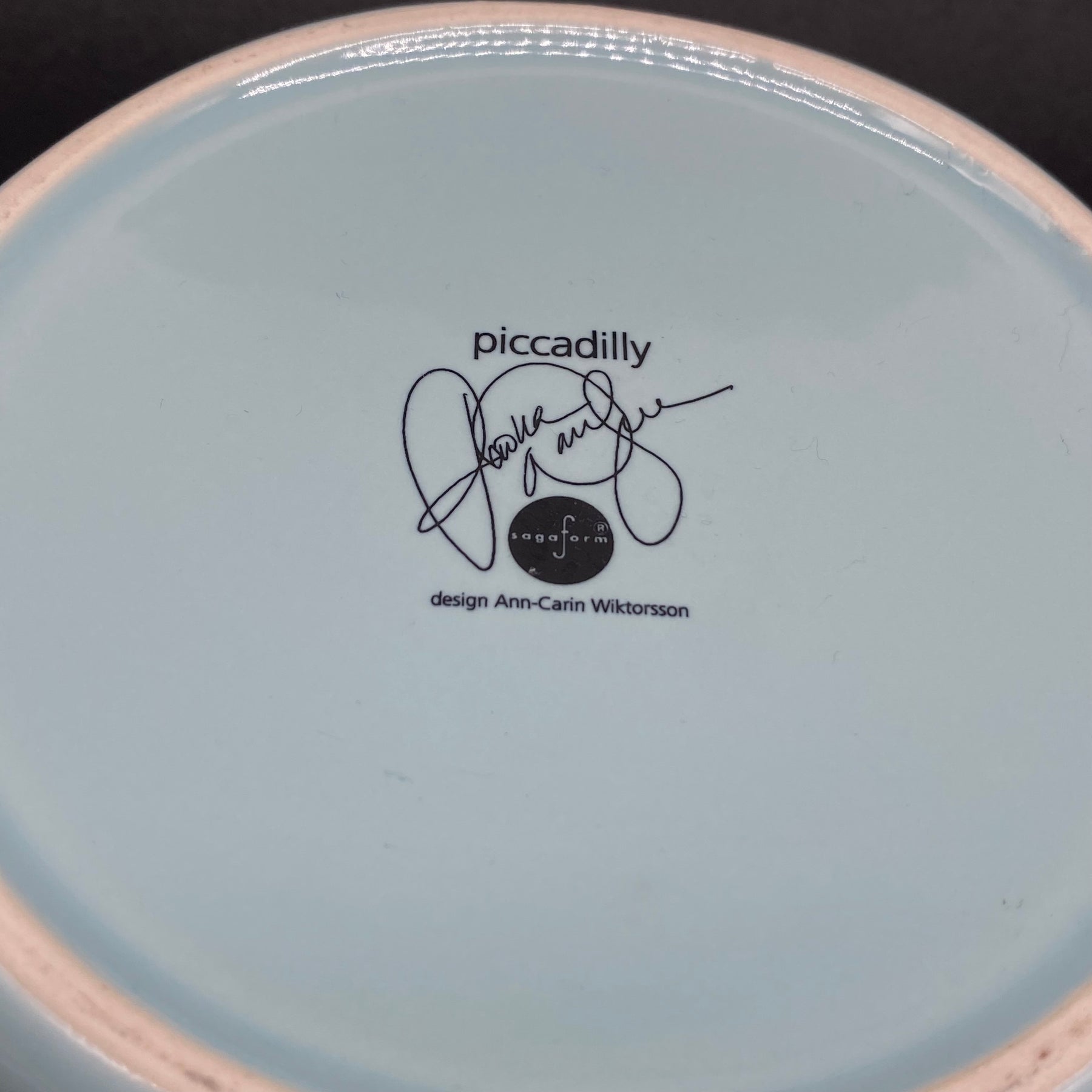 Denna vackra skål är designad av Ann-Carin Wiktorsson för Sagaforms Piccadilly-serie, vilket är ett bevis på svensk design när den är som bäst. Skålen är inte bara praktisk för servering utan också en estetisk höjdpunkt på varje bord med sin underbara ljusblå färg och unika form. Ett måste för samlare av skandinavisk design och perfekt för både festliga tillfällen och vardagsbruk. Skålen är begagnad men i mycket gott skick.