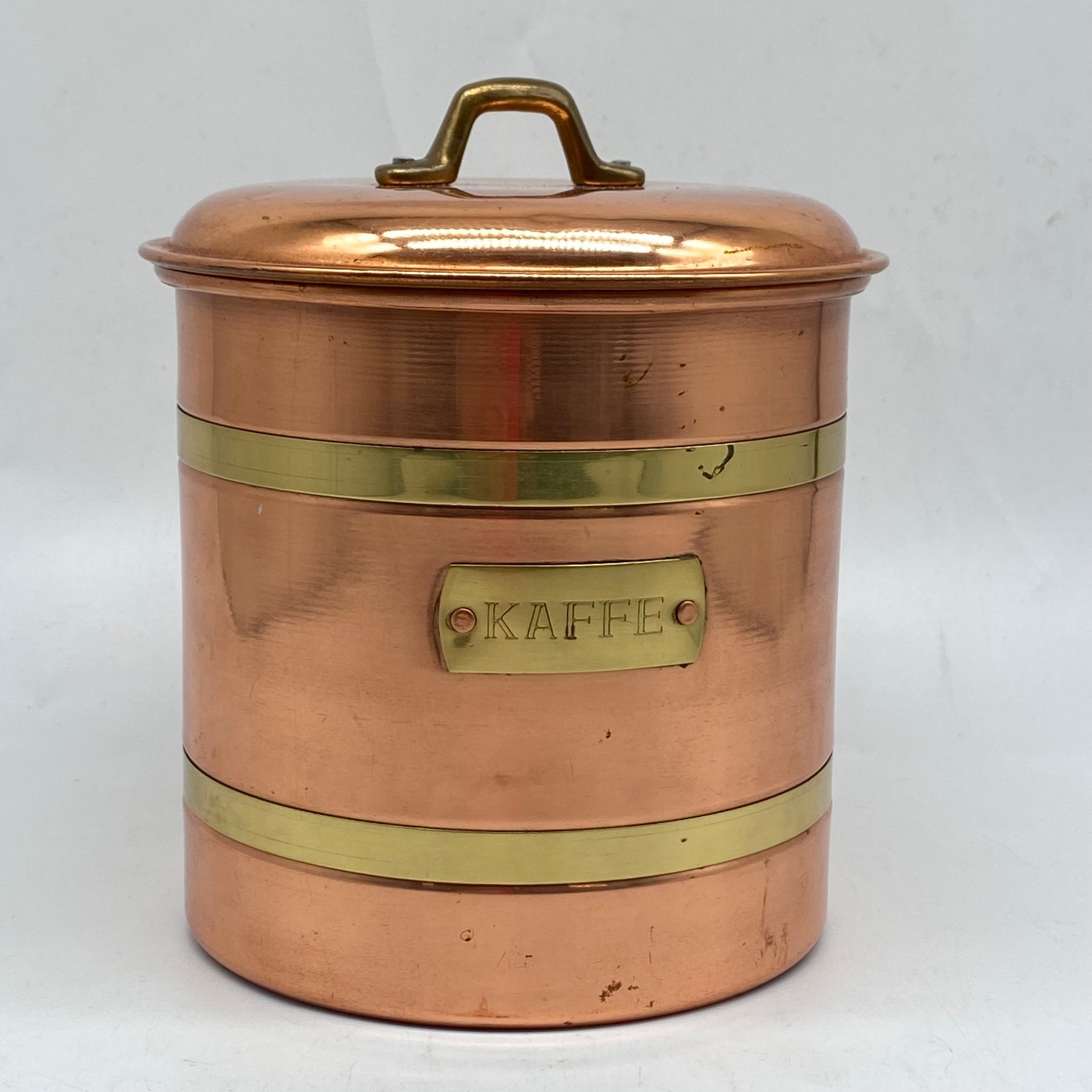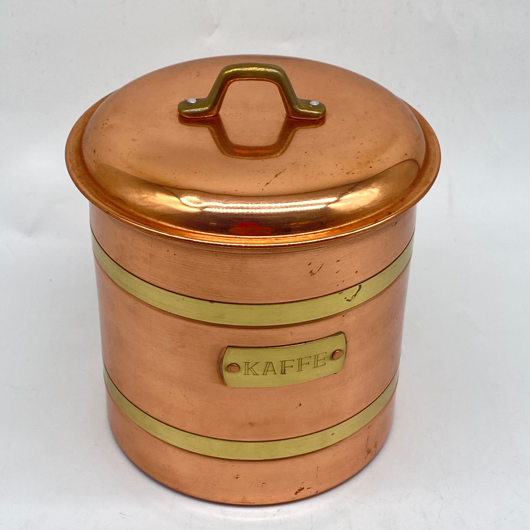 Upptäck denna charmiga och retro kaffeburk i koppar, ett måste för varje kökssamling!