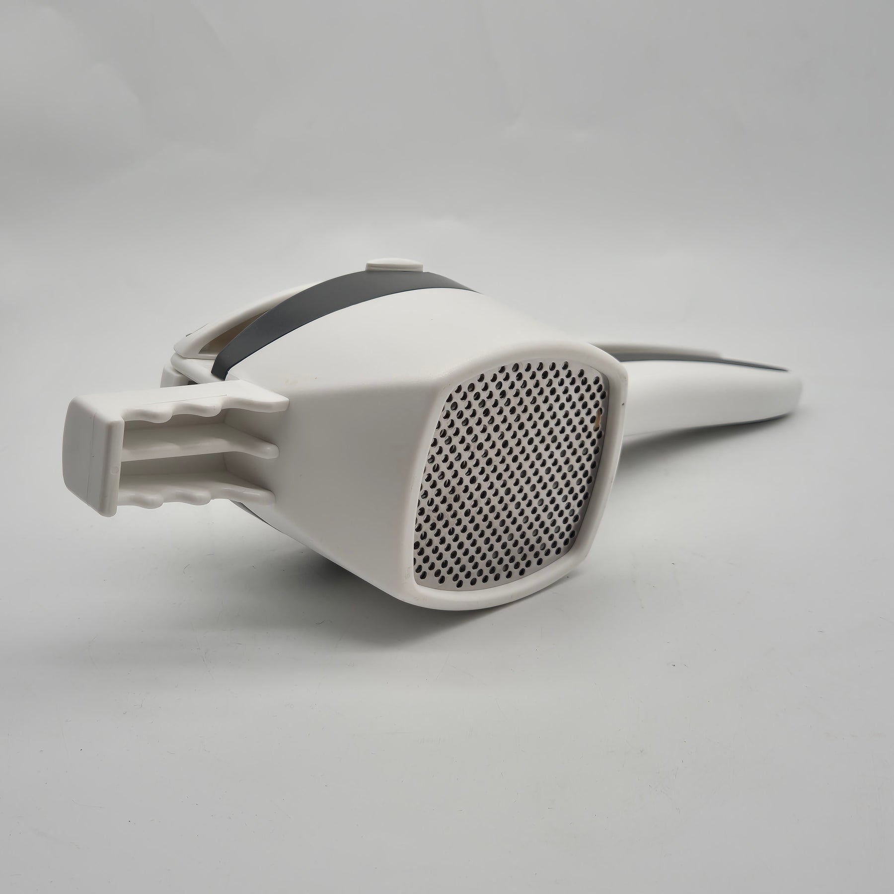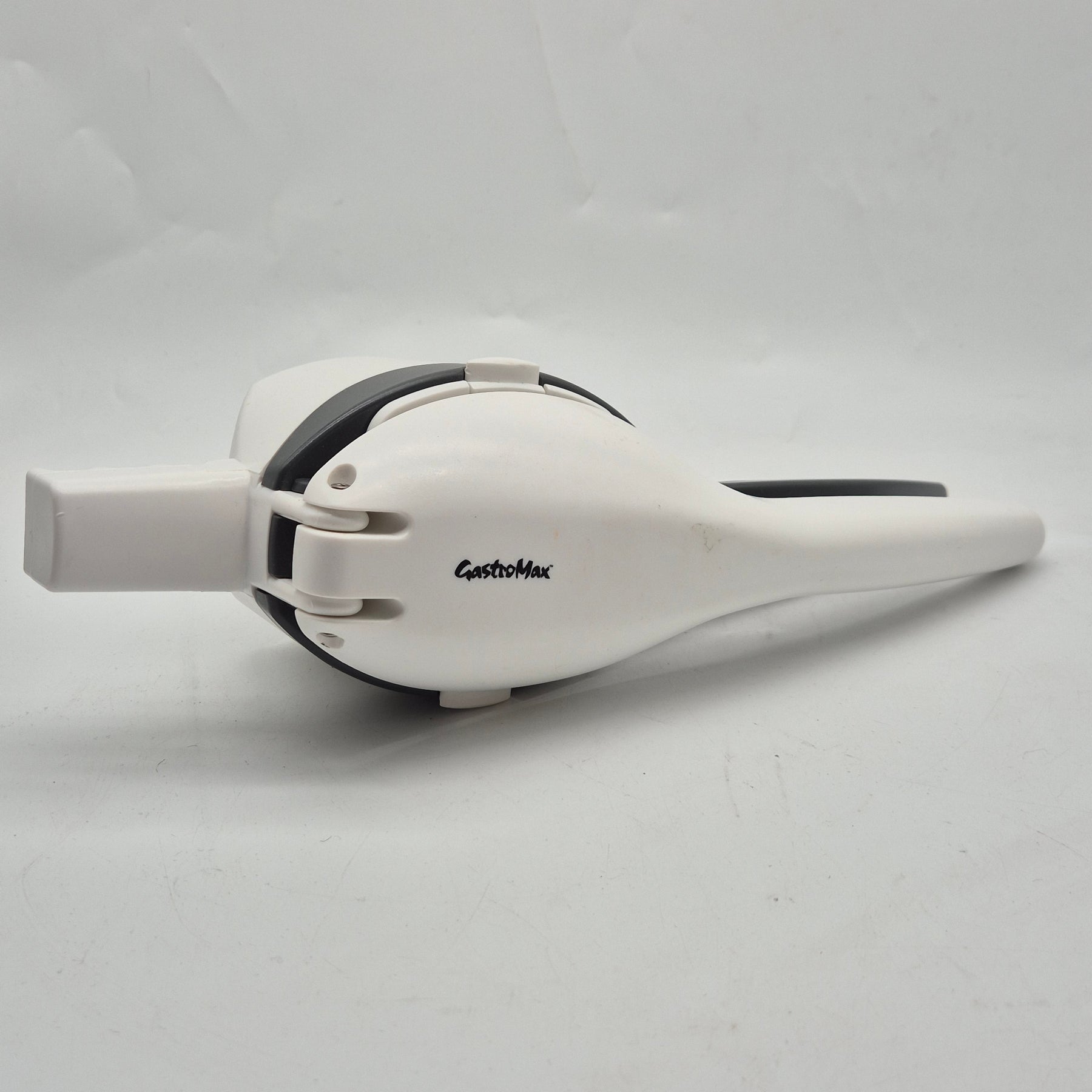 Denna Cuisinart vitlökspress är designad för att maximera användarvänligheten och effektiviteten i köket. Den har en robust konstruktion och en elegant vit och grå finish som passar väl in i alla moderna kök. Perfekt för att enkelt hantera vitlök utan kladd, dess speciella drag är att den minimerar spill och är lätt att rengöra. Produkten är begagnad men i mycket gott skick, en trogen kökshjälpare som väntar på sitt nya hem.