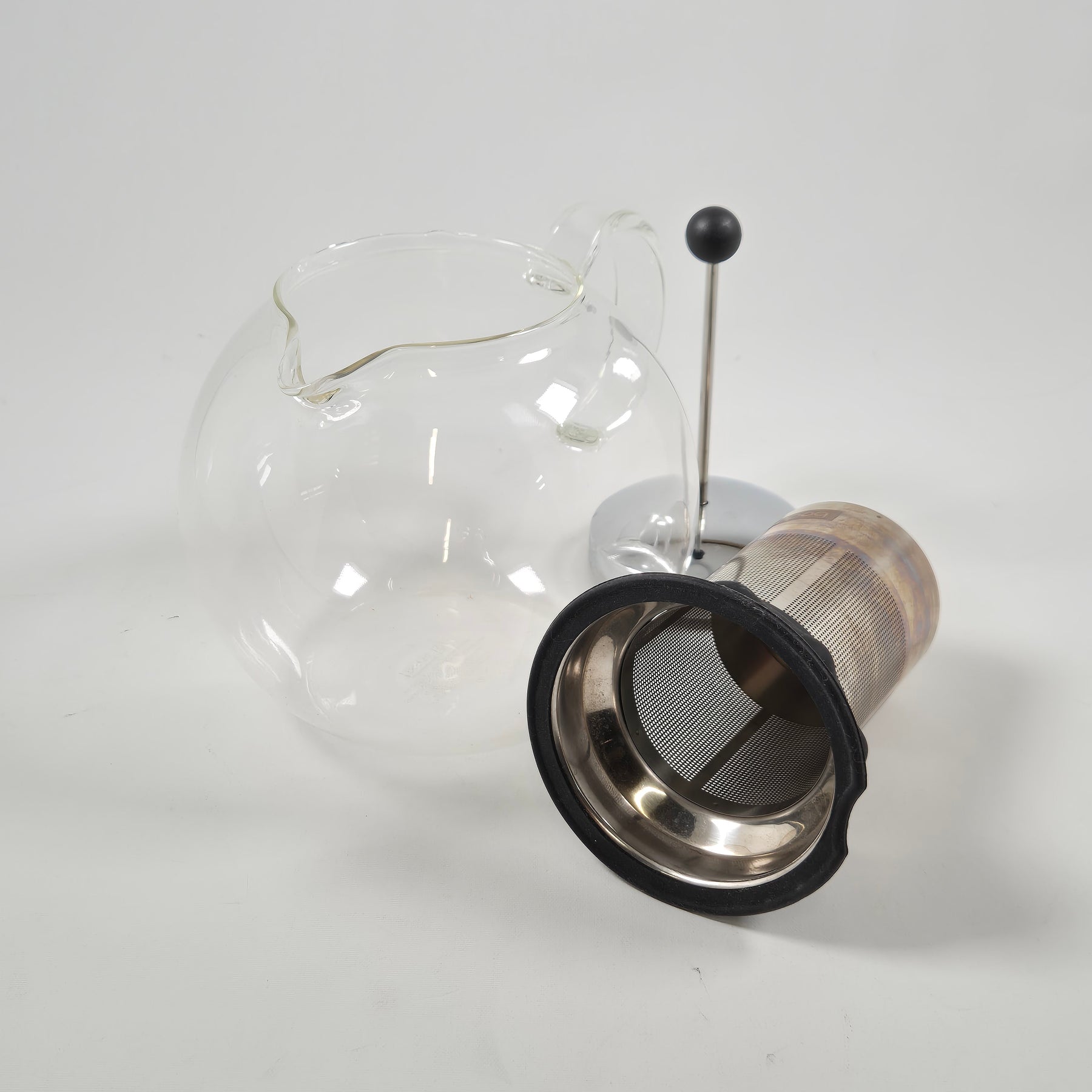 Denna kaffepress från Bodum är tillverkad av munblåst glas och är ett måste för varje kaffeentusiast. Dess transparenta design gör att du kan se kaffet blomma och bryggas, vilket tillför en visuell njutning till din morgonritual. Produkten är ideell för att brygga färskt och smakrikt kaffe på ett enkelt och klassiskt vis. Trots att den är begagnad är produkten i mycket gott skick och visar bara minimala tecken på användning.Produktspecifikationer