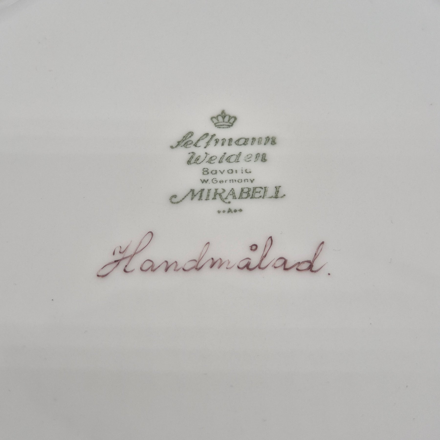 Denna tjusiga serveringsgryta, med sin noggrant handmålade dekor av bär och blommor, speglar klassisk stil och tidlös elegans. Tillverkad av det välkända tyska varumärket Leuchtenburg under serien "Mirabel", erbjuder detta föremål både estetiskt värde och funktionell användning. Perfekt för att servera dina favoriträtter eller som en del av inredningen. Produkten är begagnad men i mycket gott skick, fri från synliga defekter, vilket gör den till en charmig tillägg till varje hem eller samling.Produktspecifikationer