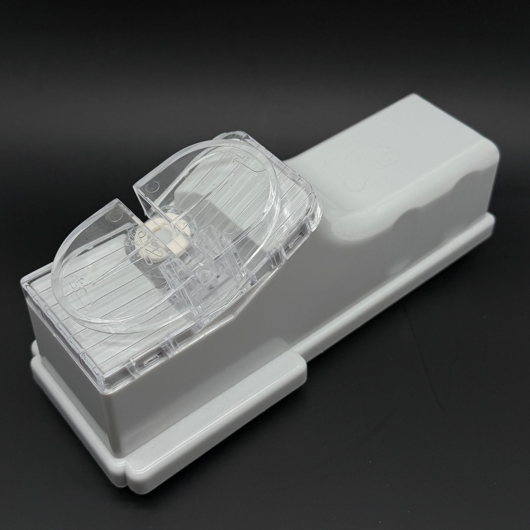 Denna knivslipare är enkel att använda och perfekt för både hemmet och arbetsplatsen. Tillverkad av hållbar vit plast med en genomskinlig övre del som låter dig se slipmekanismen under användning.