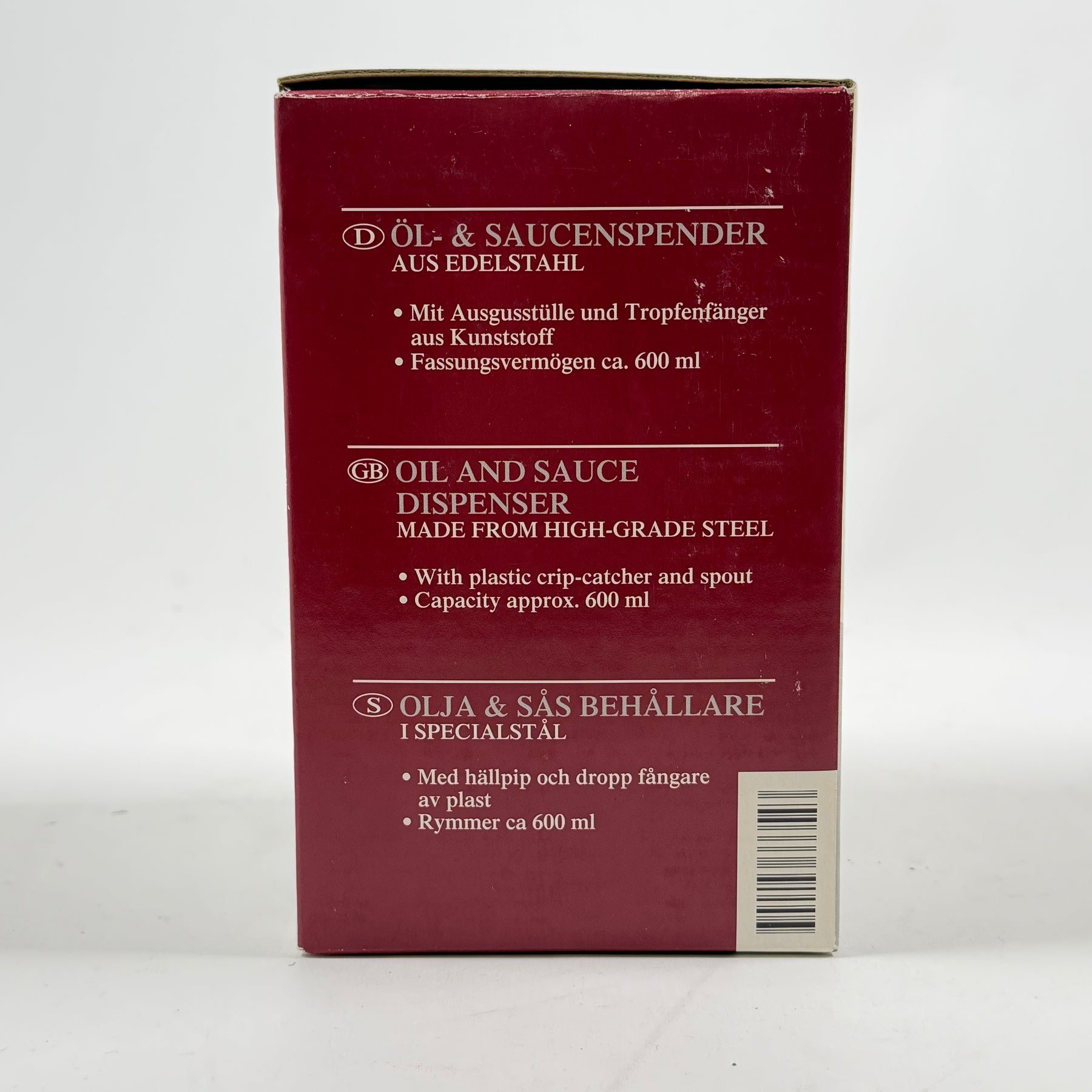 Upptäck ett måste i varje kök: den eleganta och praktiska olje- och såsbehållaren i rostfritt stål.Produktbeskrivning