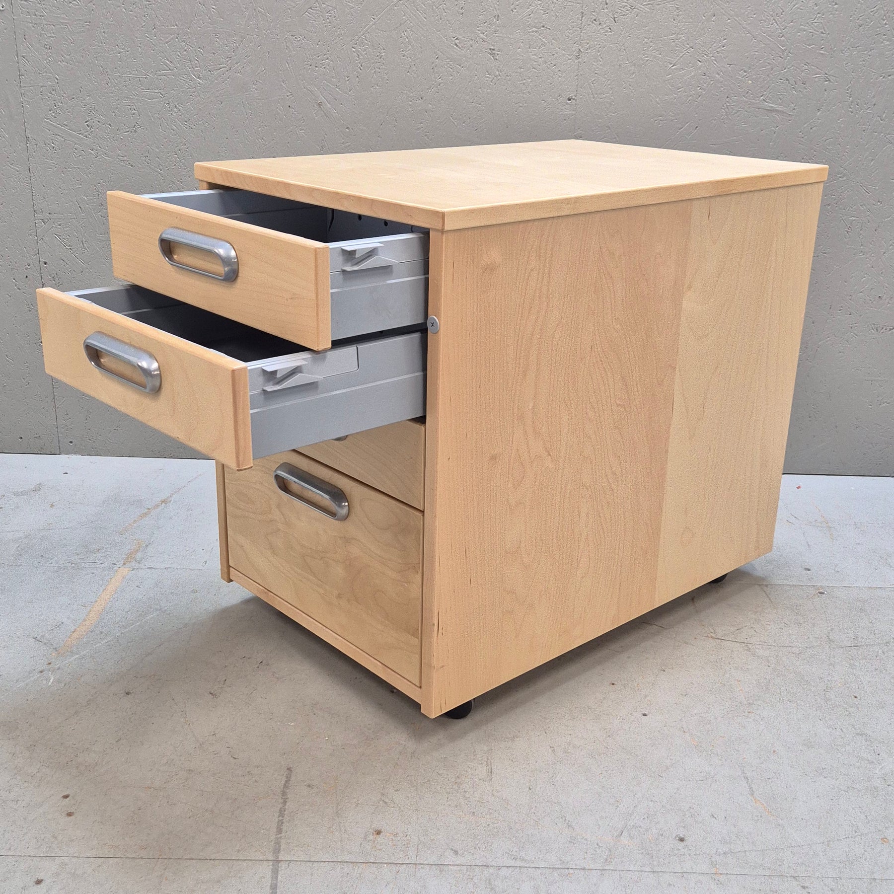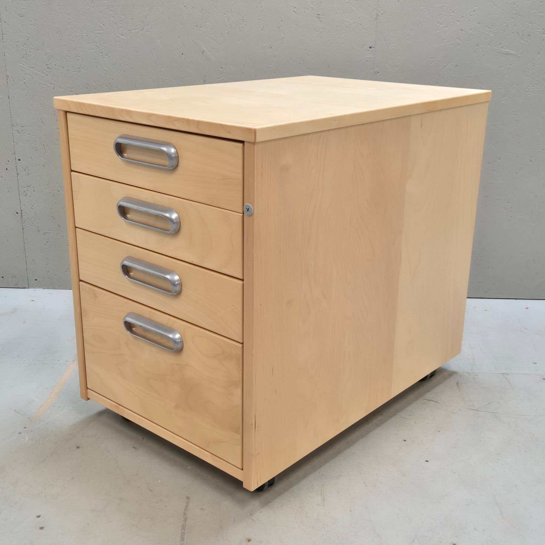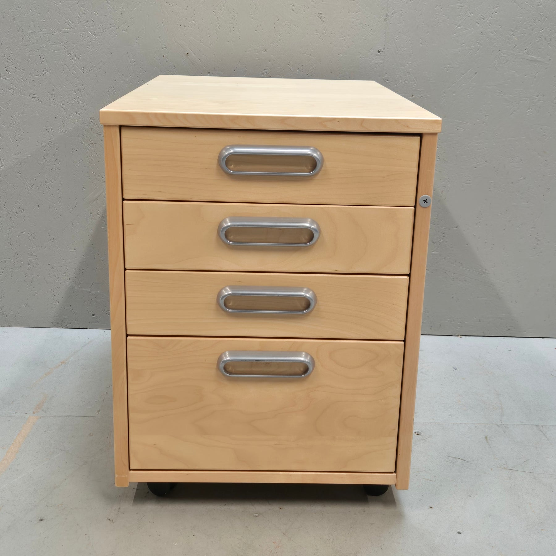 Denna moderna förvaringsbyrå är perfekt för att organisera allt från kontorsmaterial till kläder. Med dess släta ljus träfinish och handtag i silver ger det en fräsch touch till varje rum. Produkten är begagnad men bibehåller ett utmärkt skick och minimala användningsspår vilket gör den till en fantastisk investering för snygg och praktisk förvaring.Produktspecifikationer