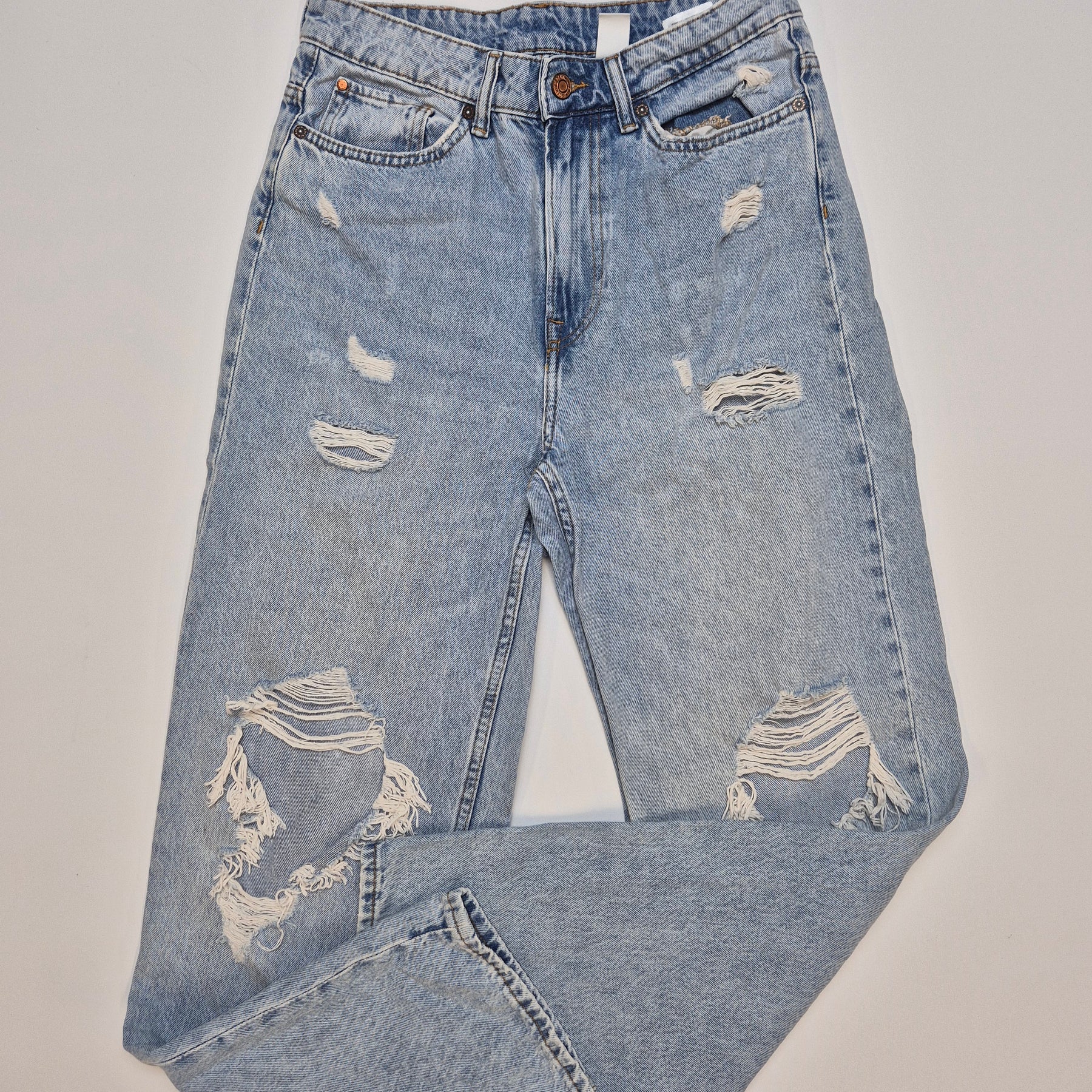 Upptäck en trendig och retrostil med dessa slitna jeans, perfekta för fashionabla vardagslooker!Produktbeskrivning