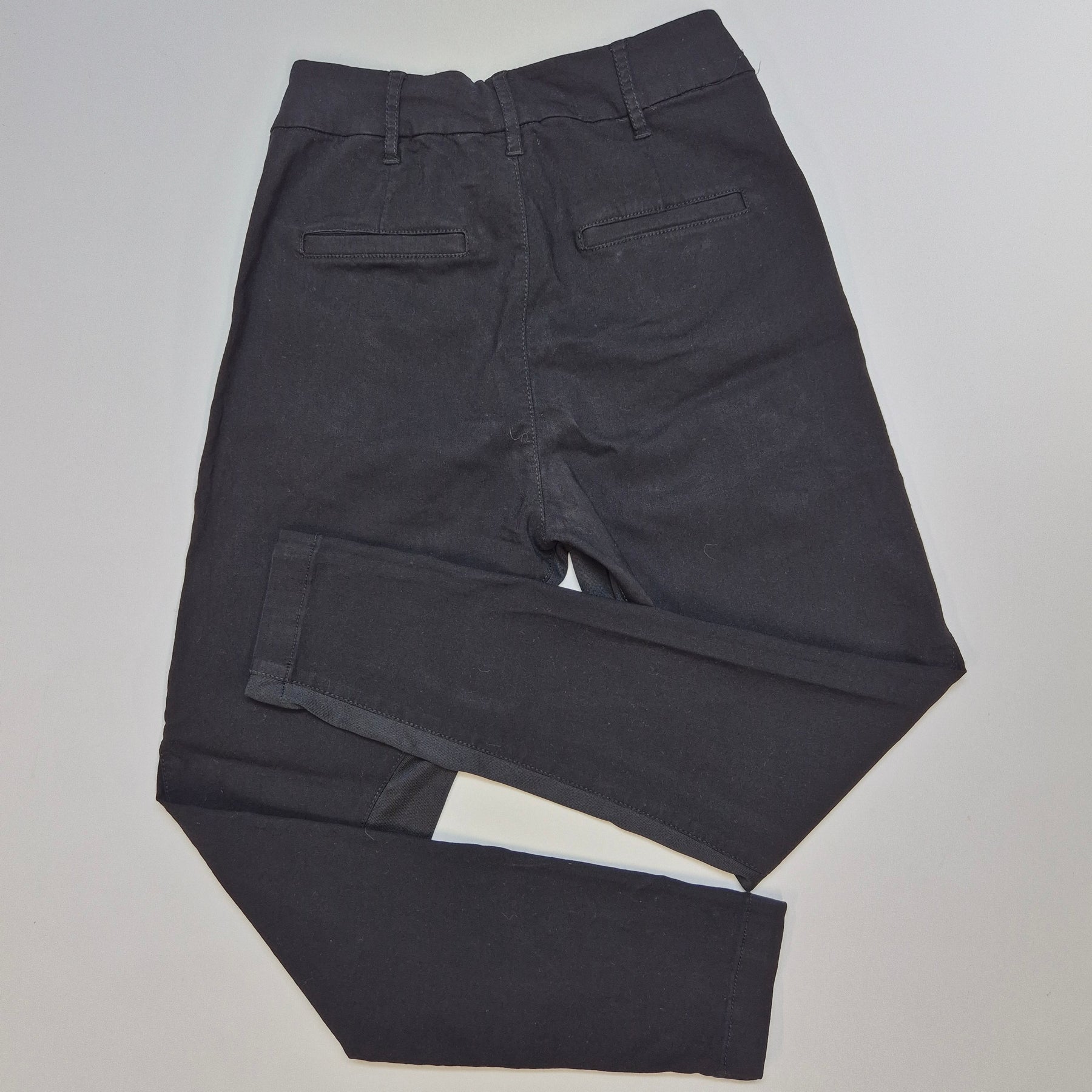 Dessa sofistikerade svarta byxor är designade av KappAhl, kända för sin tidlösa och bekväma mode. Byxorna har en slimmad passform som kompletterar varje outfit, oavsett om det är till vardags eller fest. Tillverkade med omsorg och kvalitet, dessa byxor är ett måste i varje garderob. Skicket är mycket gott, utan synliga tecken på slitage.